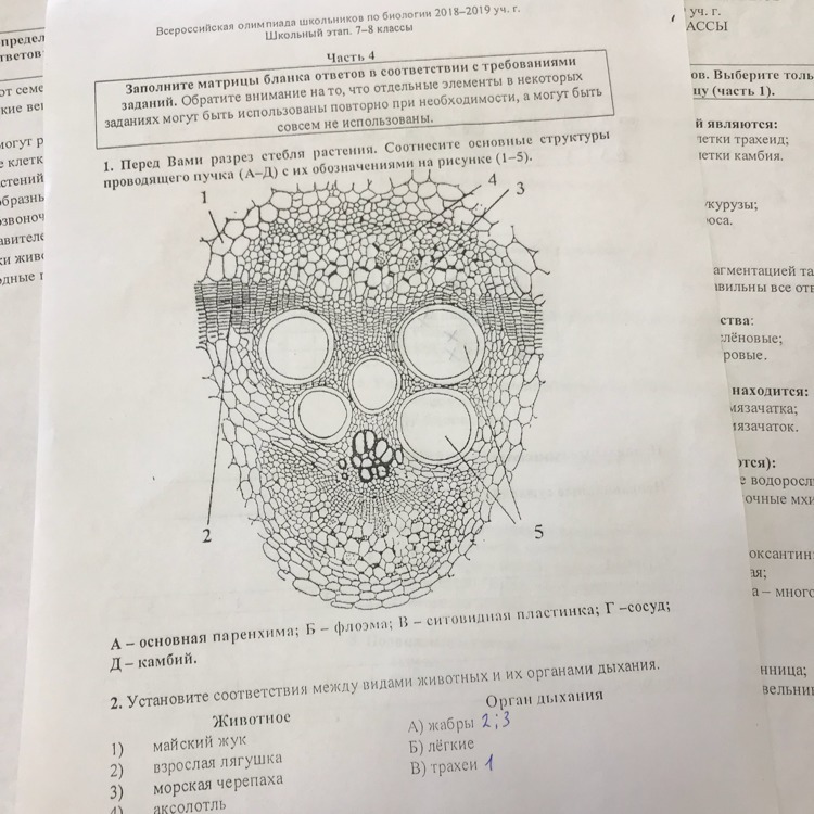 5-камбий, 4-флоэма , 3-ситовидная пластина, 2-сосуд, 1-основная перенхима.