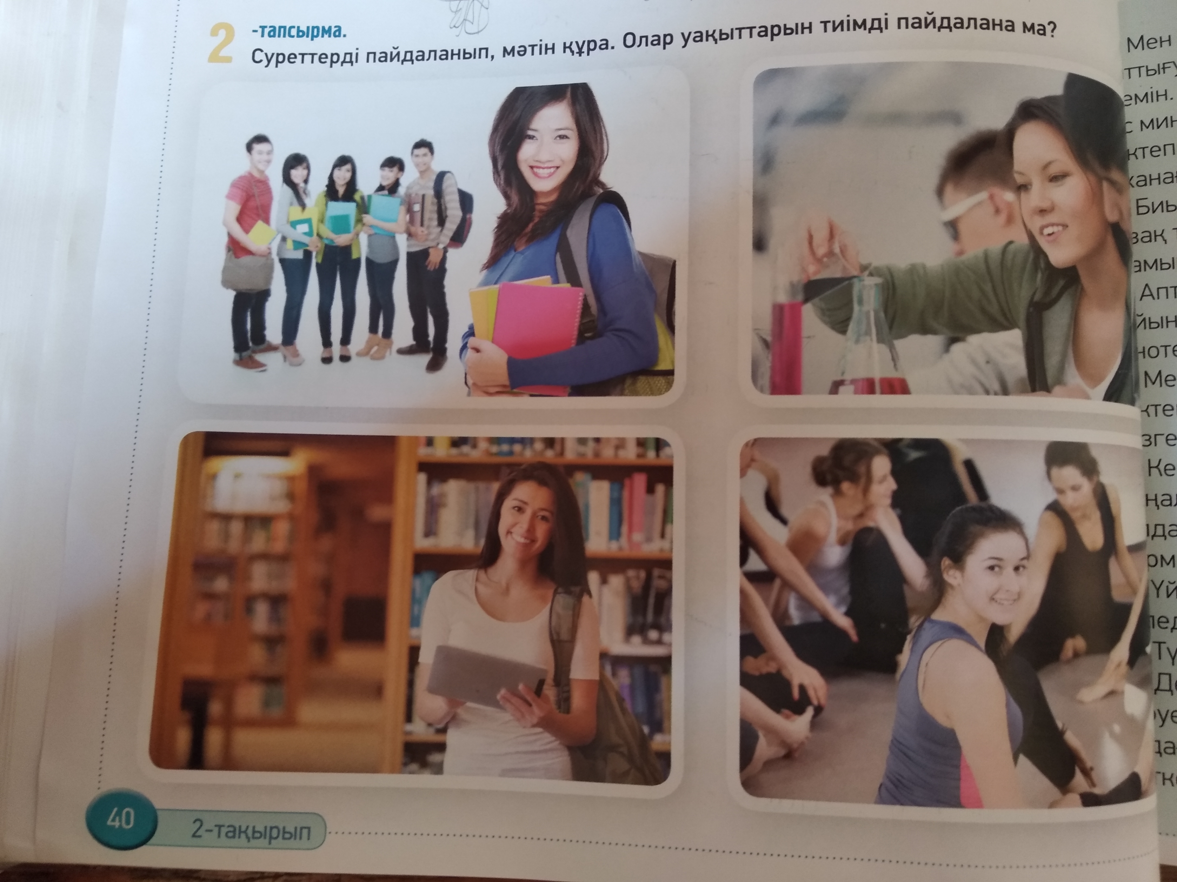 оқушылар мектеп алдында жаттығып, сабақ жасайды.Мектепте олар оқиды, жазады, көптеген жаңалықтарды біледі . Мектептен кейін олар кітапханаға барады және қосымша сабаққа қалады.Барлық сабақтардан кейін олар спортпен шұғылданатын түрлі үйірмелерге барады.