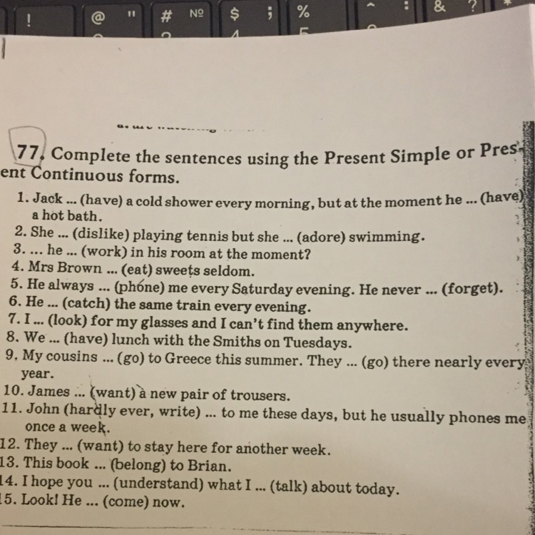 1. has , is having