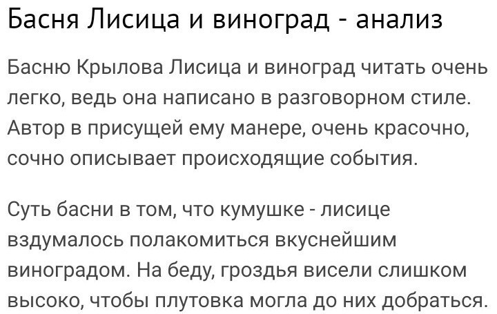вот анализ басни лисуа и виноград