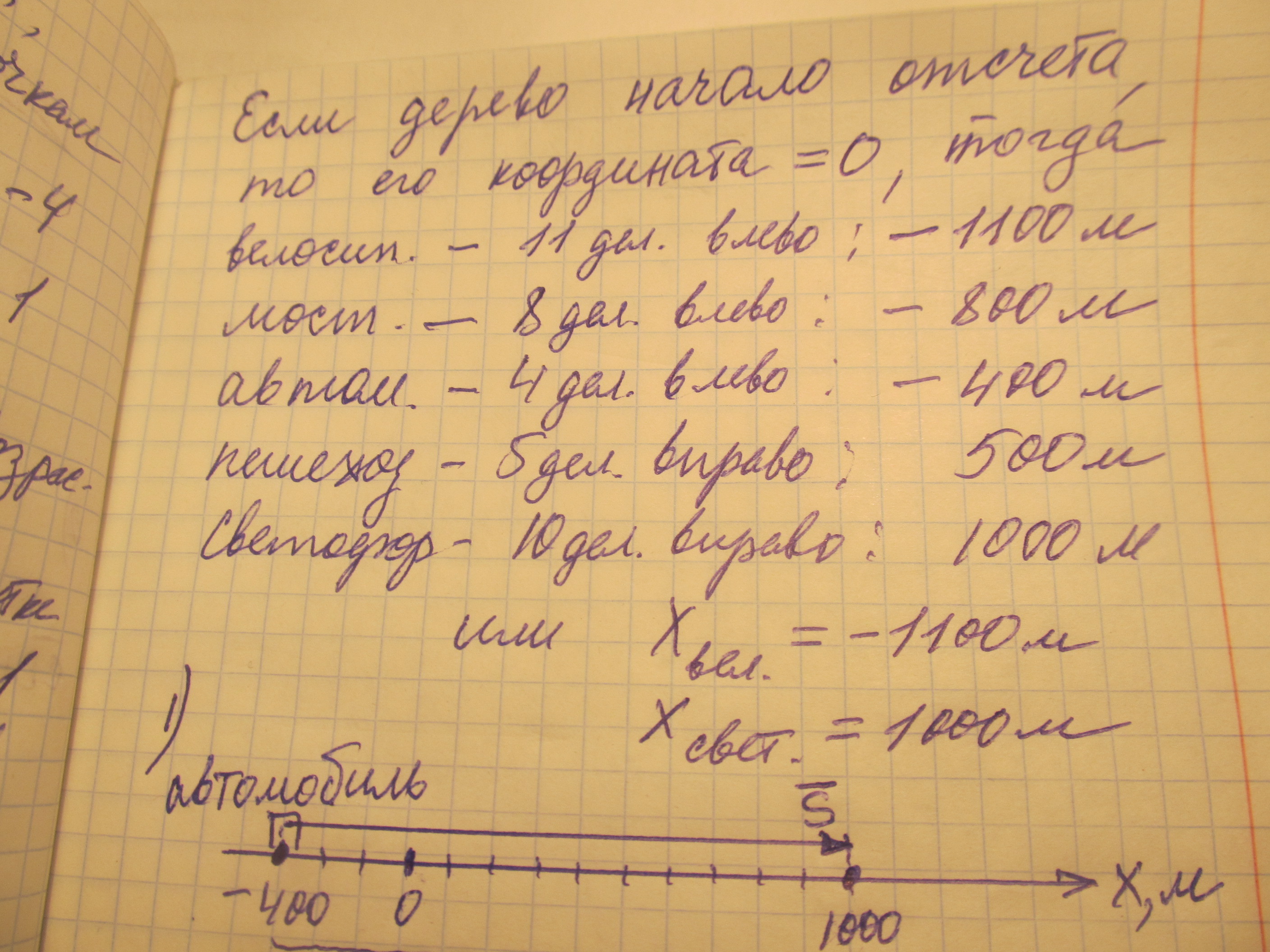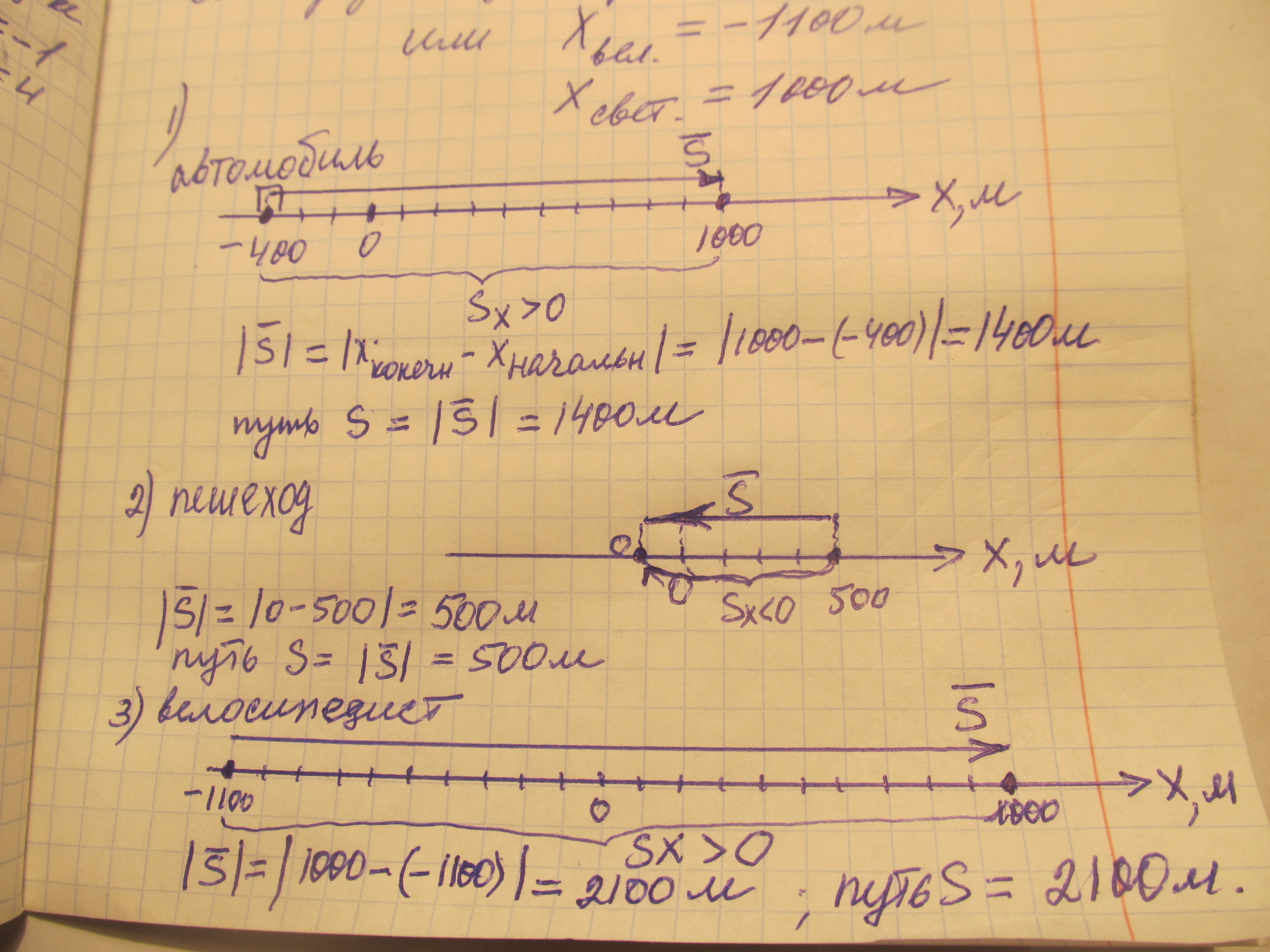 Велосипедист переместился к дереву. То, что он был у светофора значения не имеет. ISI=I0-(-1100)I=1100 м ; Sx>0