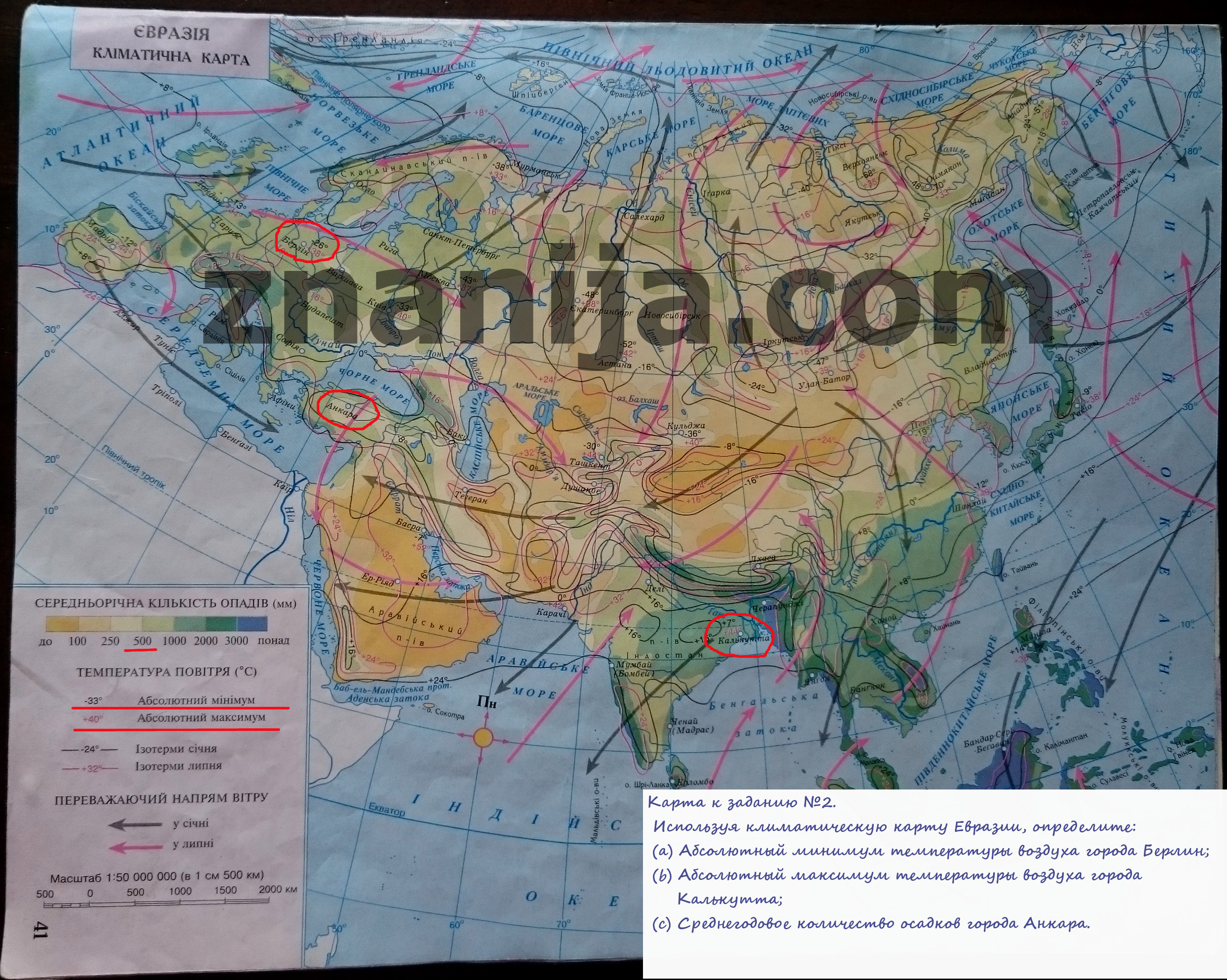 2. Используя климатическую карту Евразии, определяем: