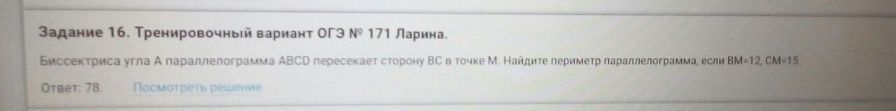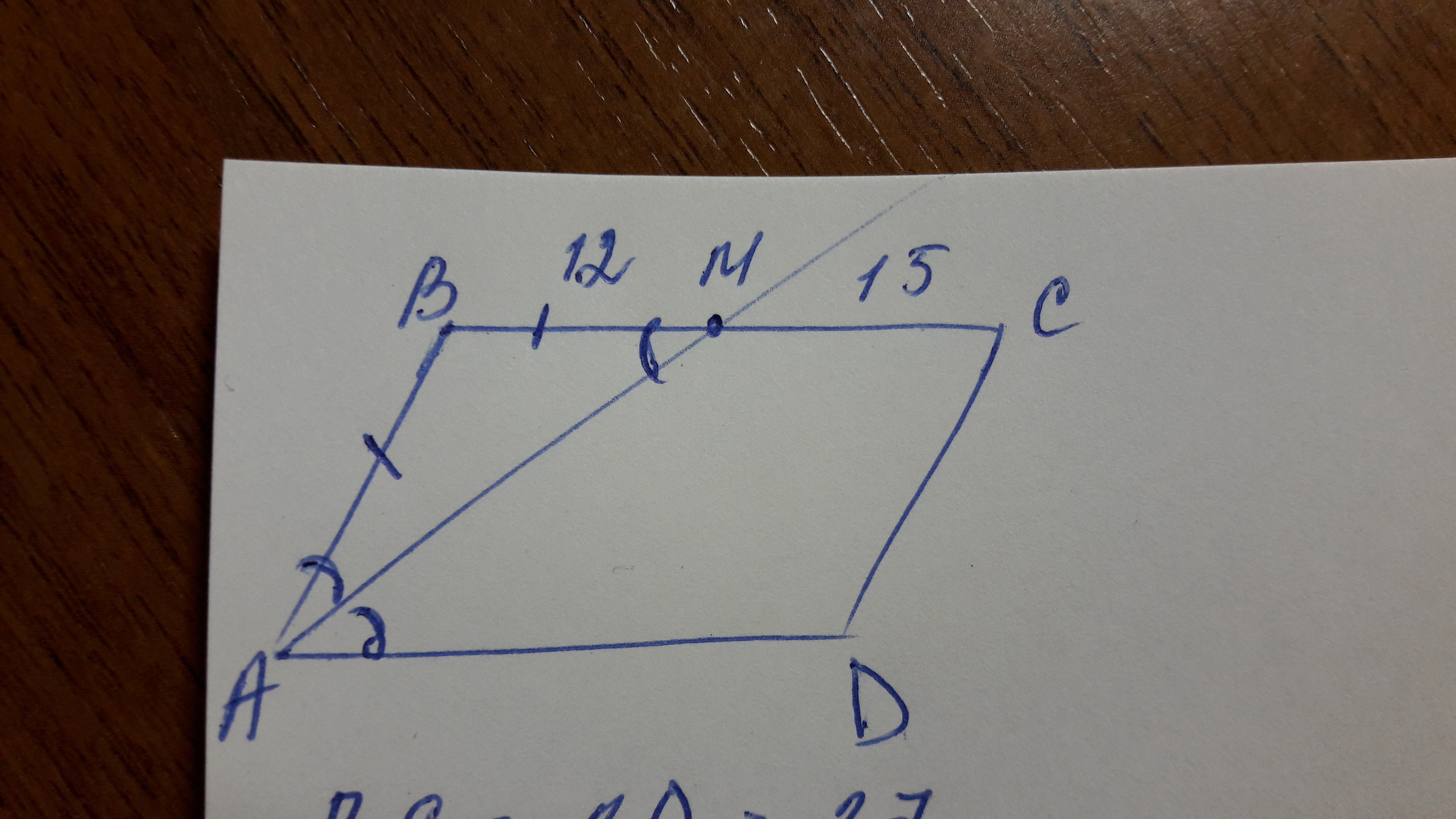 <МAD = <ВMA => треугольник AВМ- равнобедренный => ВМ=АВ=12