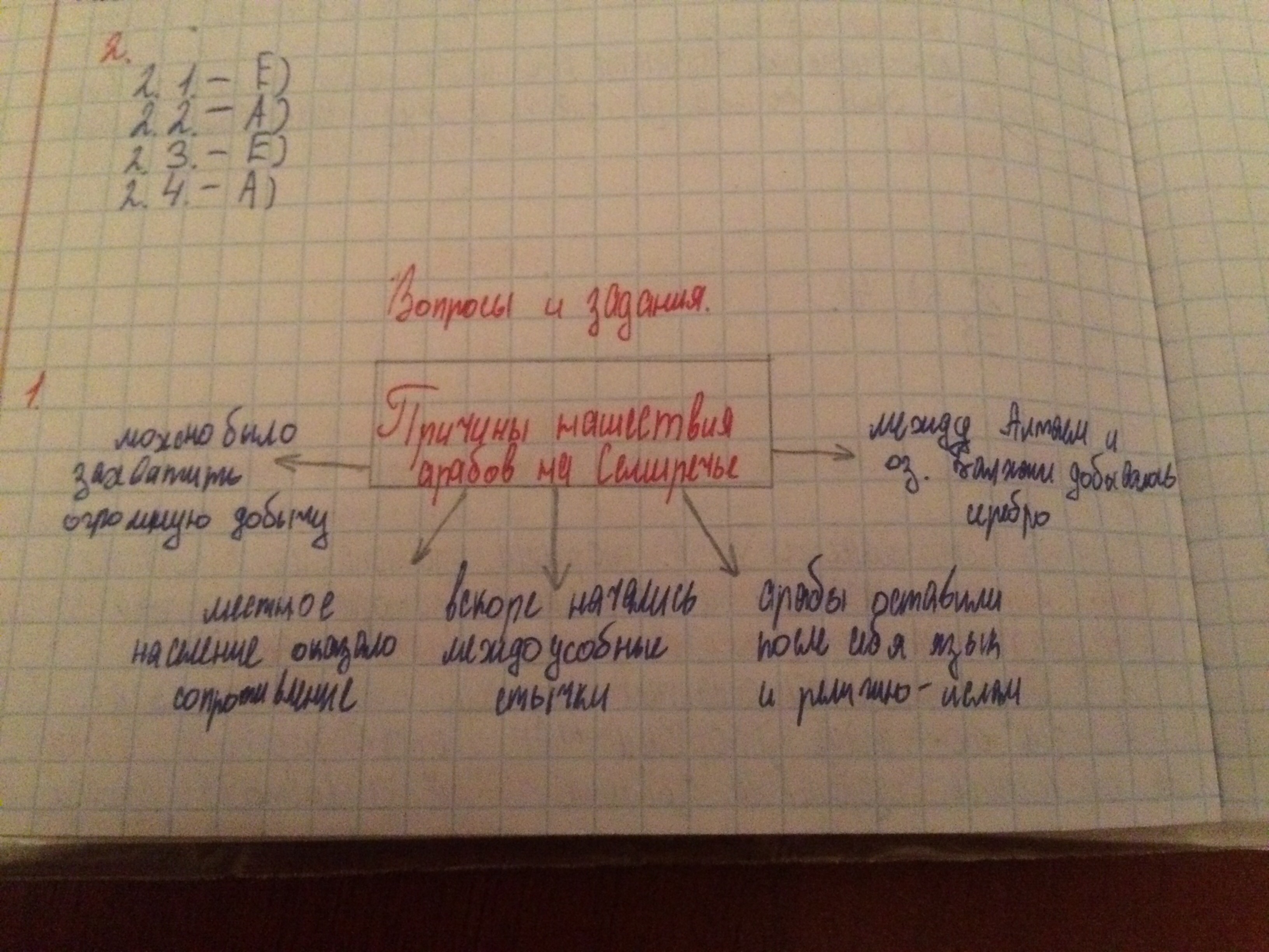 Объясните причины нашествия Арабов на семиречье. Результаты представьте в виде схемы или таблицы