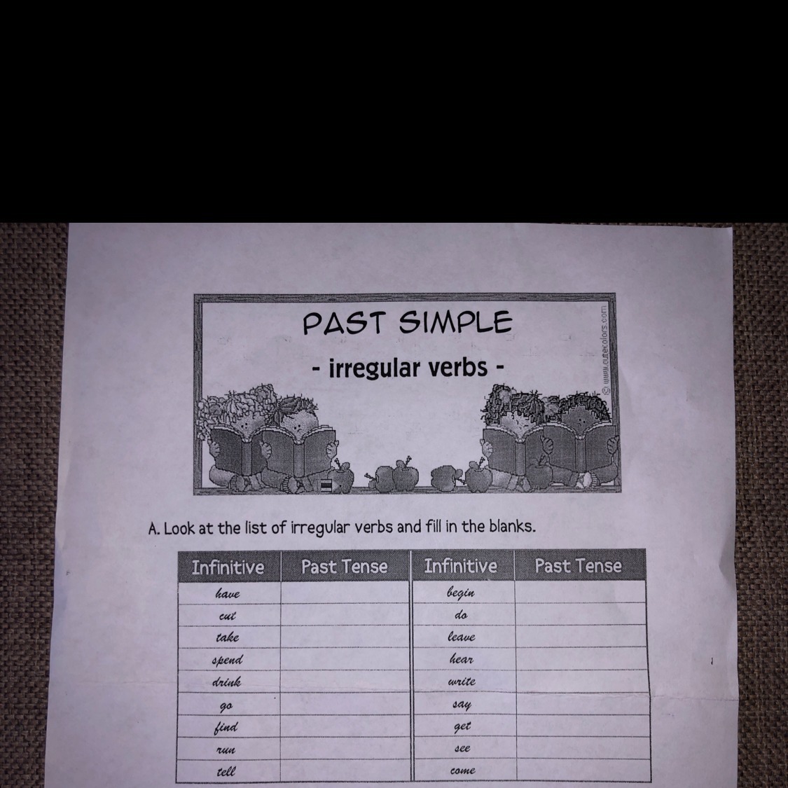 had, cut, took, spent, went, found, ran, told, began, did, left, heard, wrote, said, got, saw, came