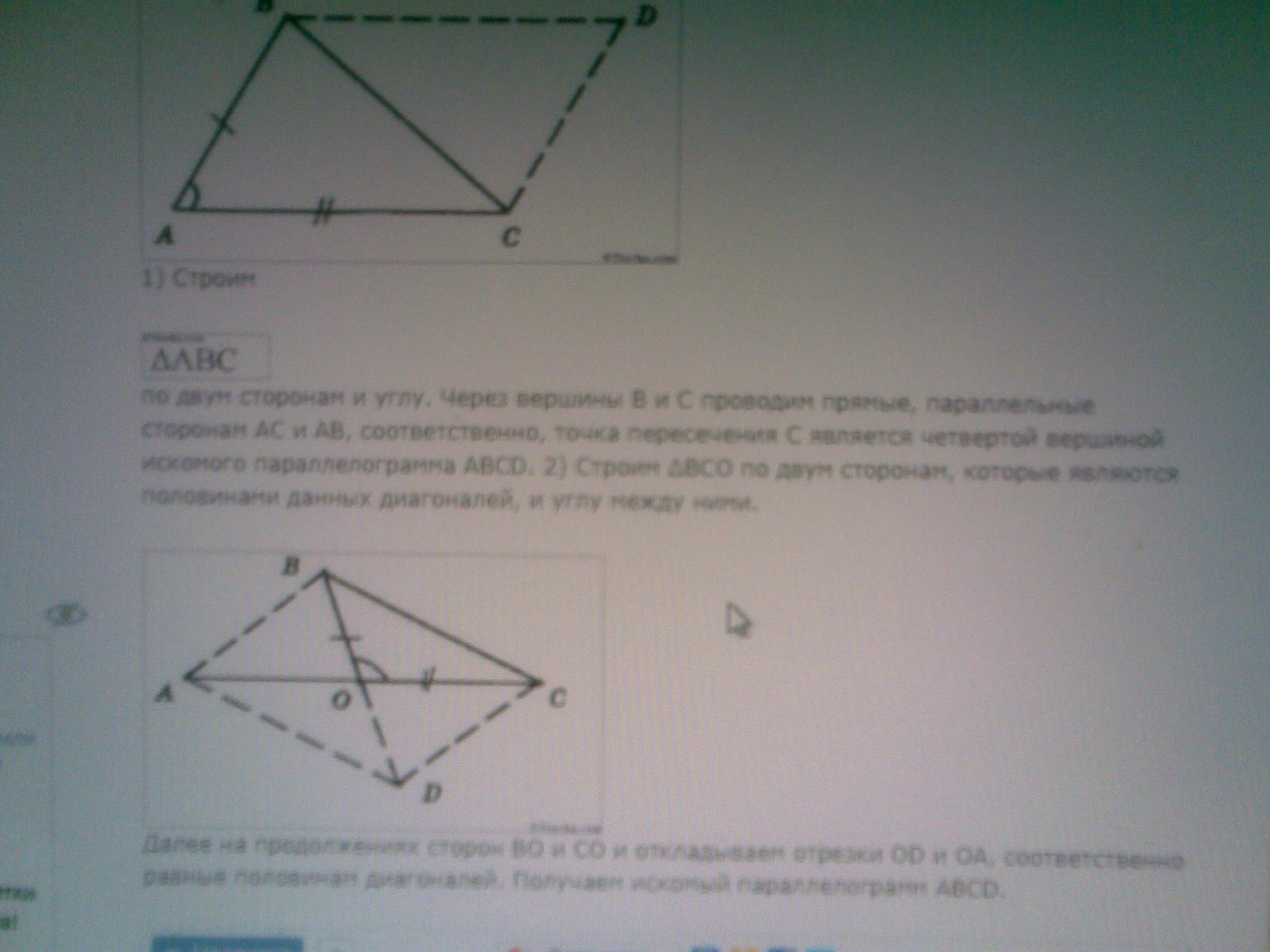 постройте с помощью циркуля и линейки параллелограмм:по двум соседним сторонам и углу между ними