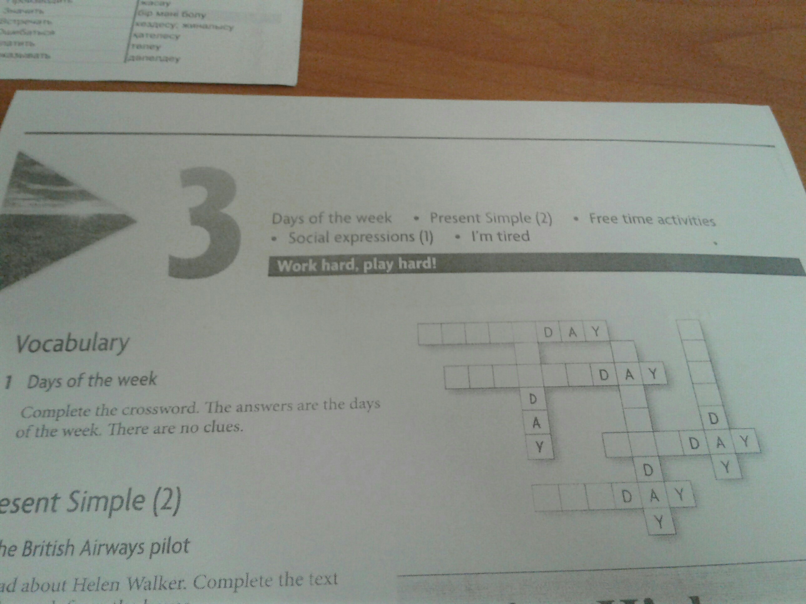 По вертикали: слева - Sunday, по середине - Saturday, последнее по вертикали - Tuesday.