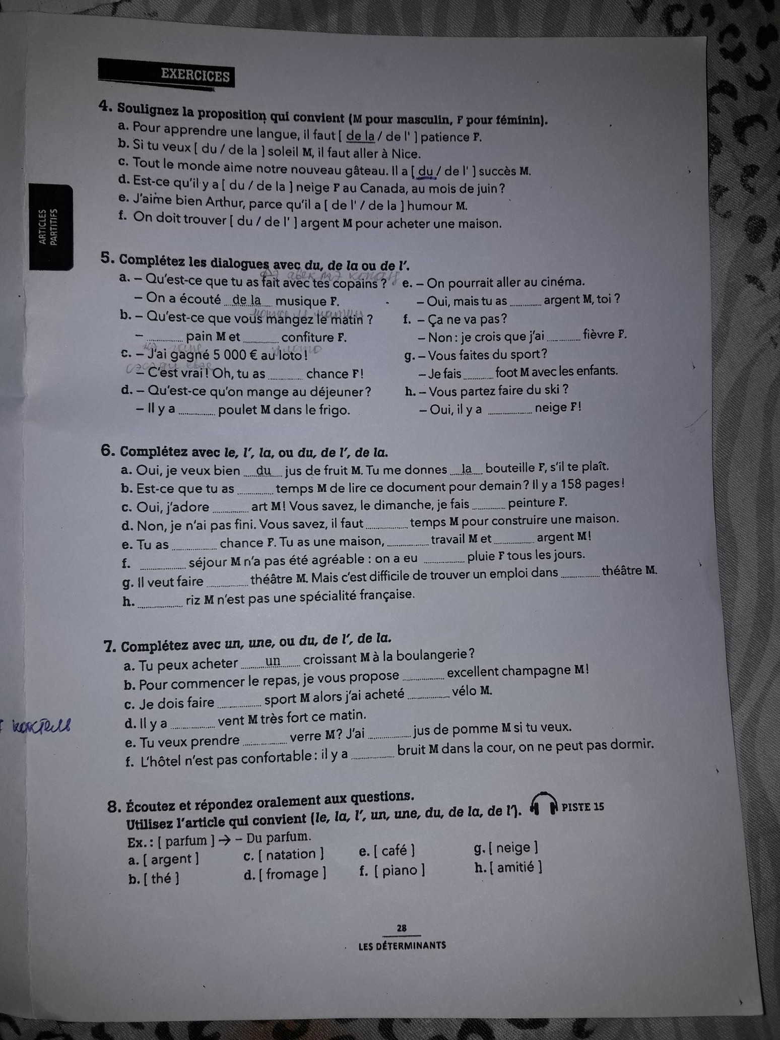 e. un verre, du jus