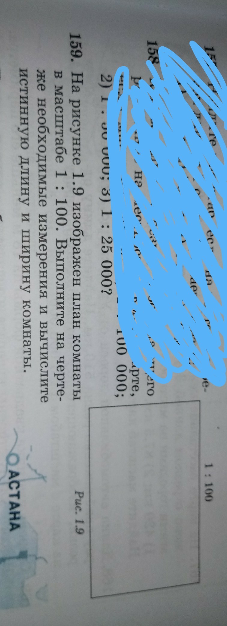 на рисунке 1.9 изображён план комнаты в масштабе 1 :100 выполните на чертеже необходимые измерения и Вычислите истинную длину и ширину комнаты
