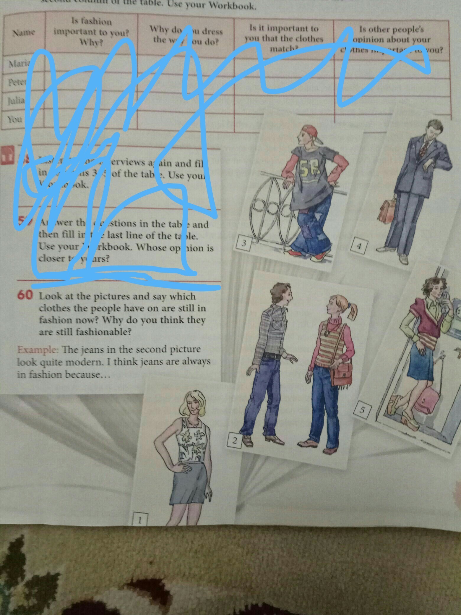 не особо сложное наверно , но нужна помощь , нужно охарактеризовать одежду одного из персонажей , помогите пожалуйста (упр 60)