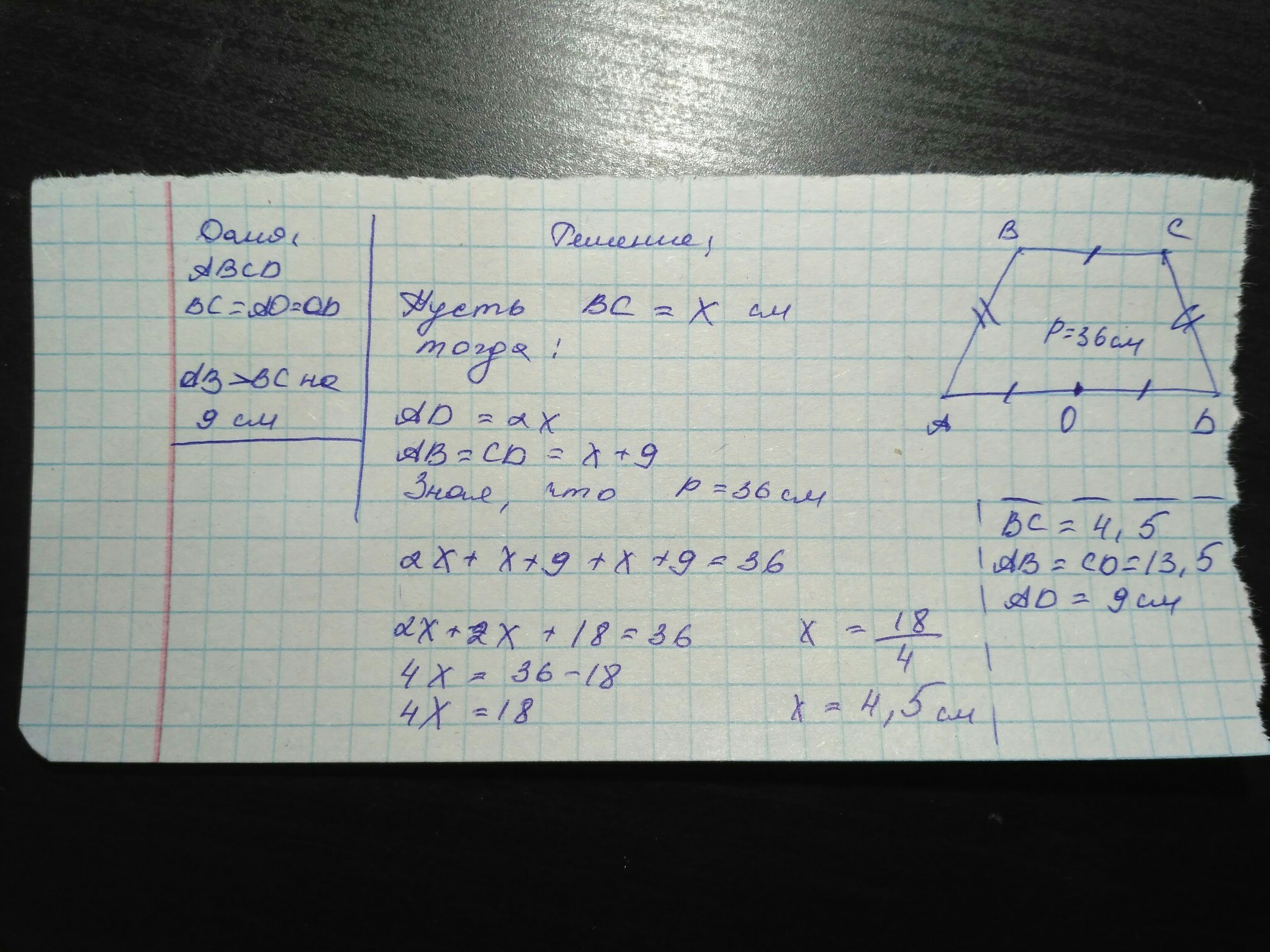 Боковая сторона на 9 см больше, чем меньшее основание.