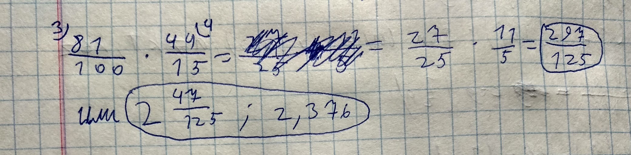 Ми спочатку скорочуємо числа 44 і 110 ділимо на 2 а числа 81 і 15 ділимо на 3 і тоді виходить 594:275=2,16