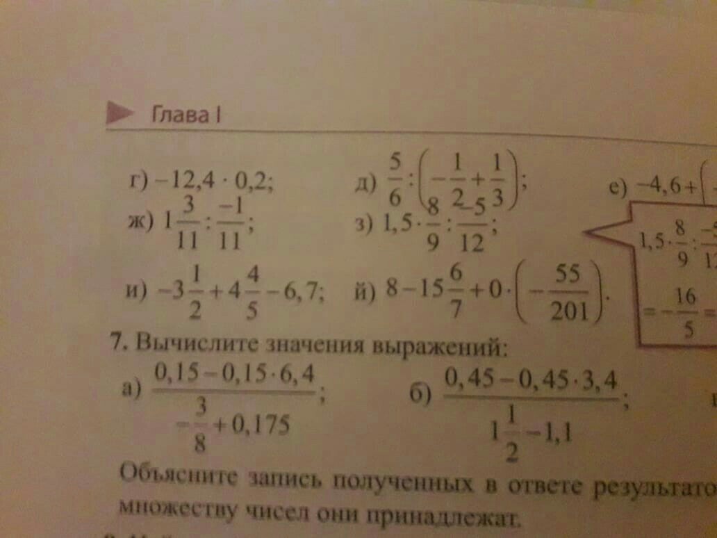 Смотри. Нужно привести к одному знаменателю. А десятичные дроби переводим в обычные. В и) 6.7 = 6 7/10 = 67/10. Остальные тоже переводим в неправильные дроби.