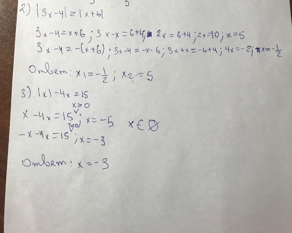 в 1) не дописано условие раскрытия модуля, когда подмодульное выражение больше нуля либо меньше нуля, дальше не смотрела
