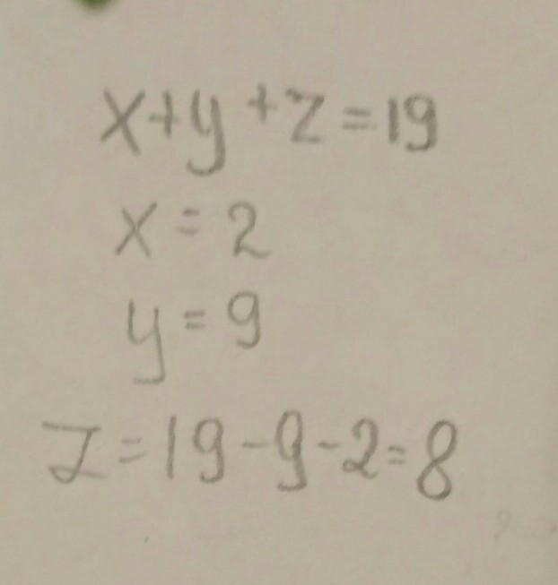 Сумма трех чисел равна 19 -и.найдите третье число,если первое число самое маленькое четное число,а второе самое большое однозначное число.