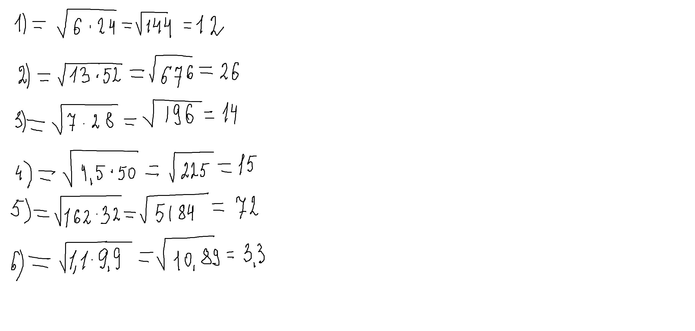 6)√1,1*√9,9=√11*√0,1*√0,1*√9*√11=11*0,1*3=3,3