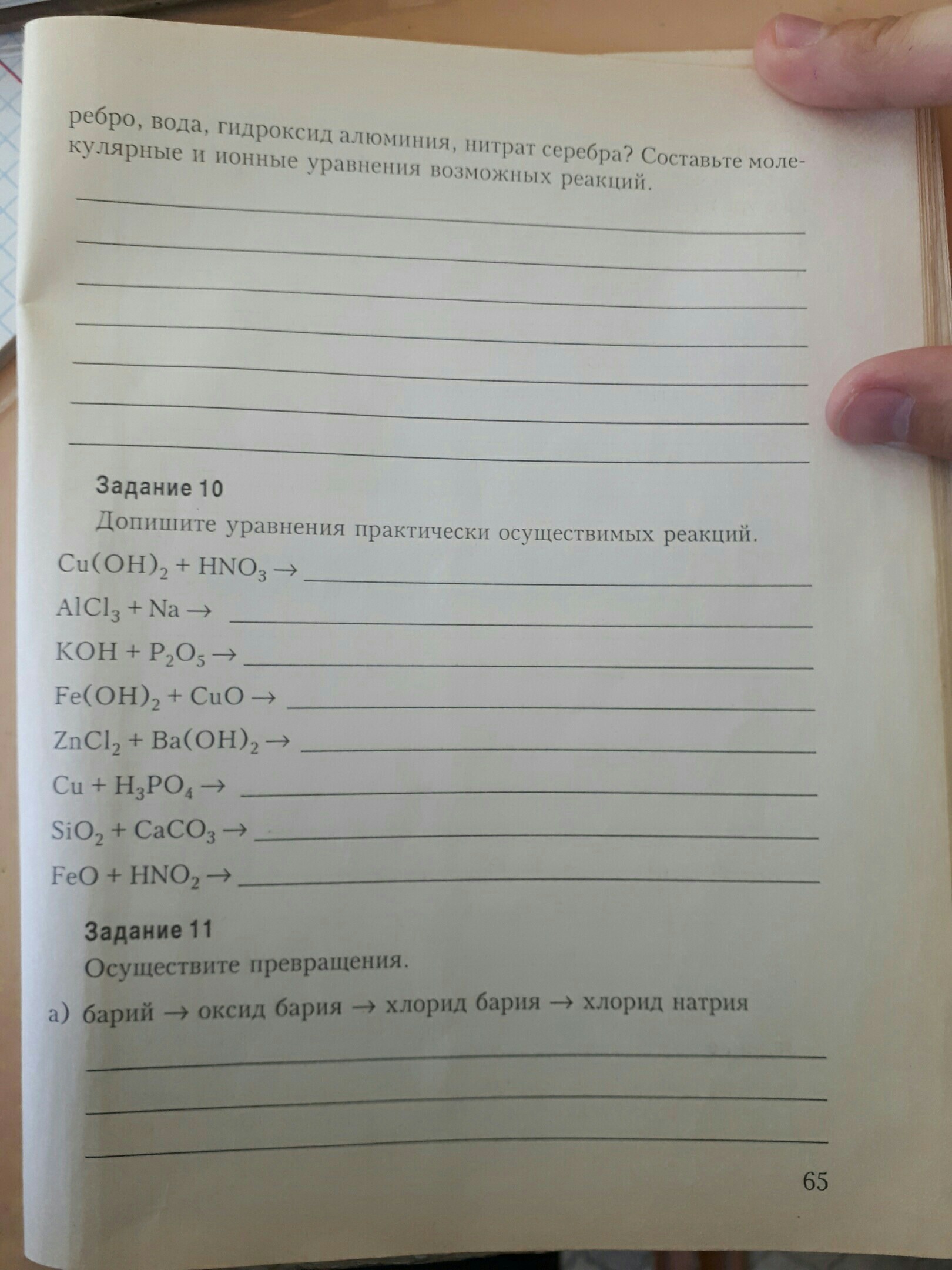 Гидроксид железа с оксидом меди не реагирует, так же как натрий не вытеснякт аллюминий