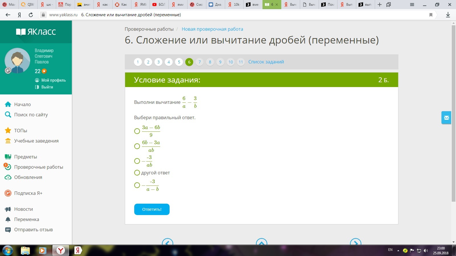 ответ : 2. привести нужно было к общему знаменателю (a*b)