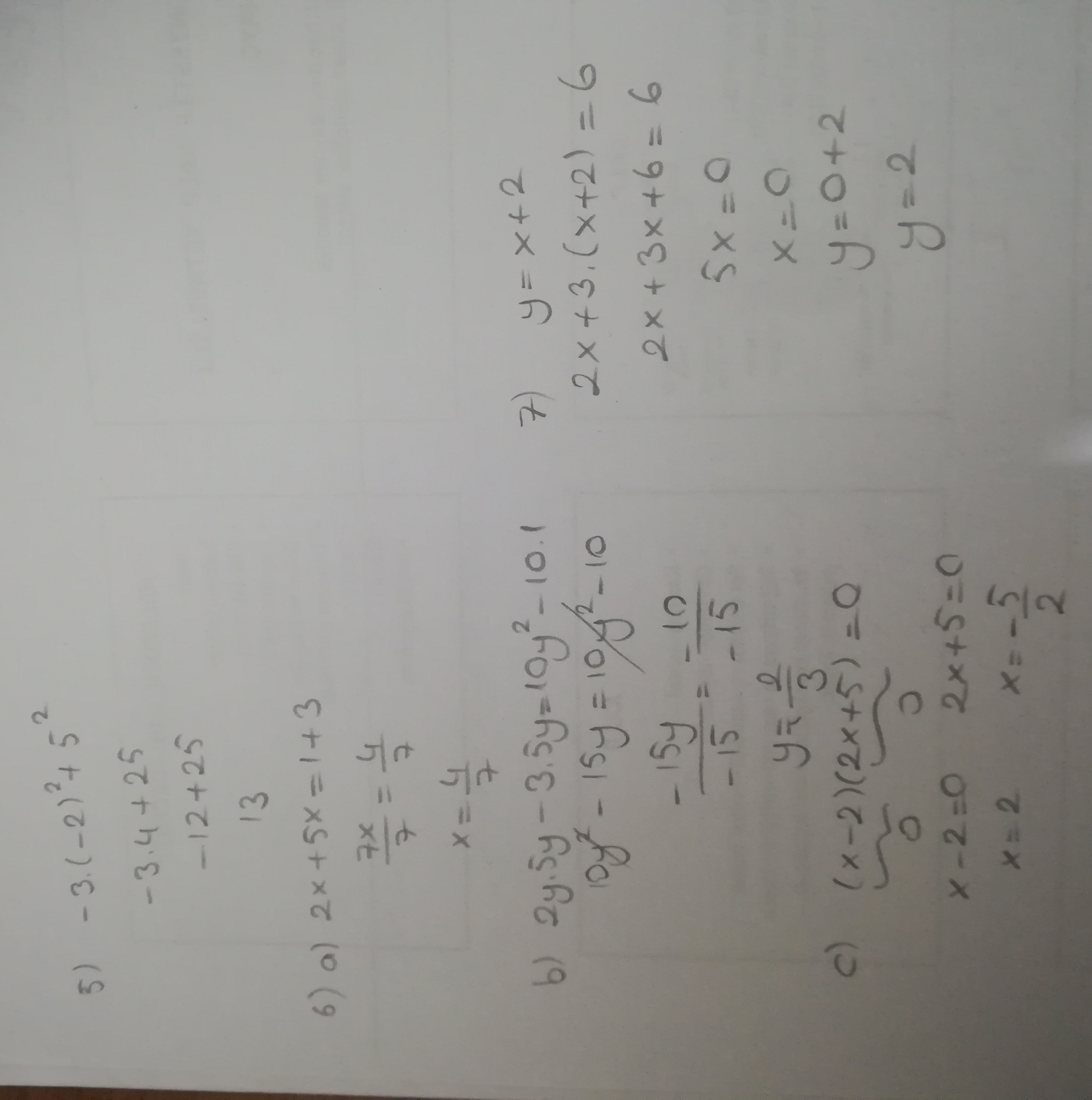 5). -3a² + b² = -3*(-2)² + 5² = -3*4 + 25 = 25 - 12 = 13;