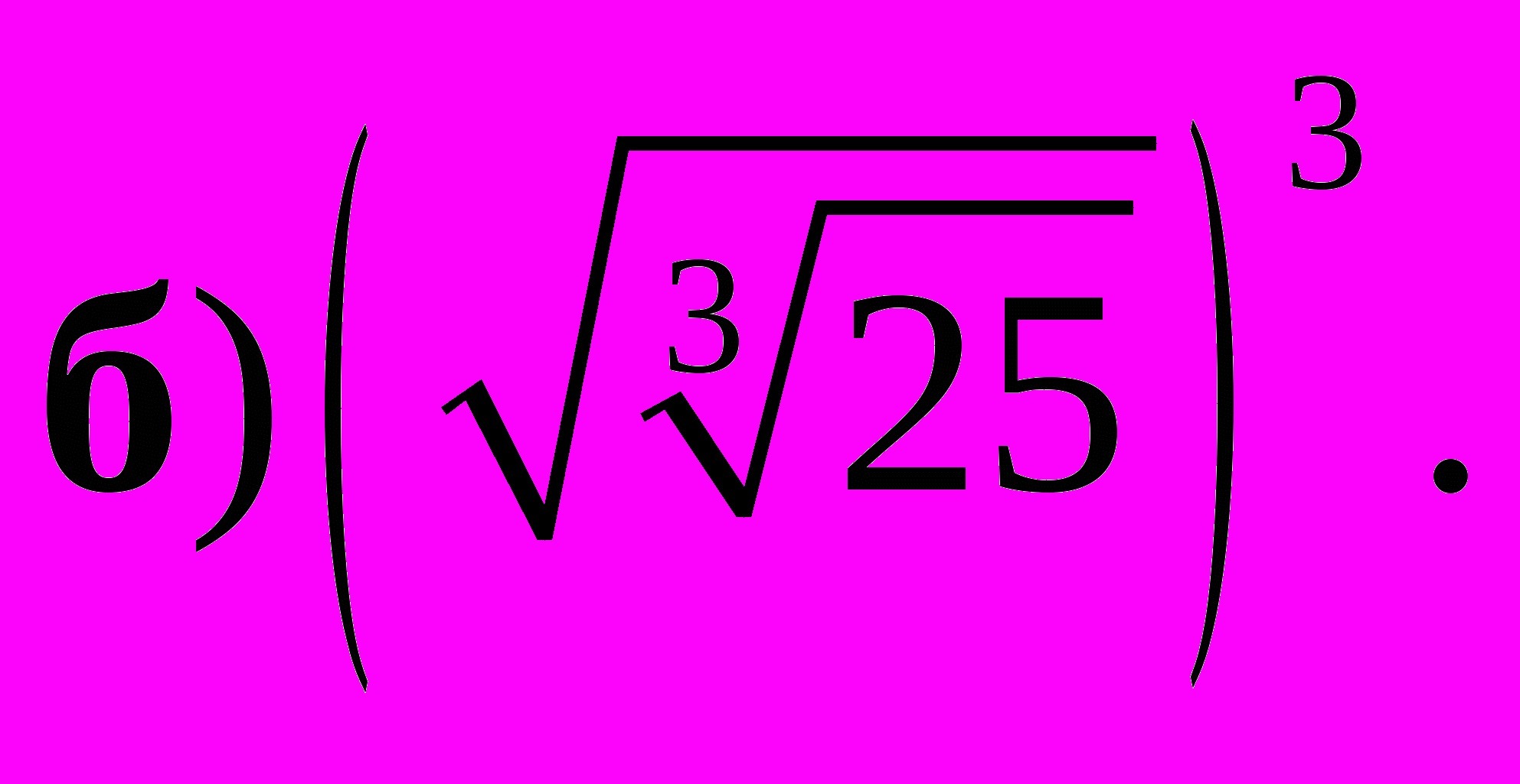 b) (√∛25)³ = (^6√25)³ = ^6√(25³) = √25 = 5.