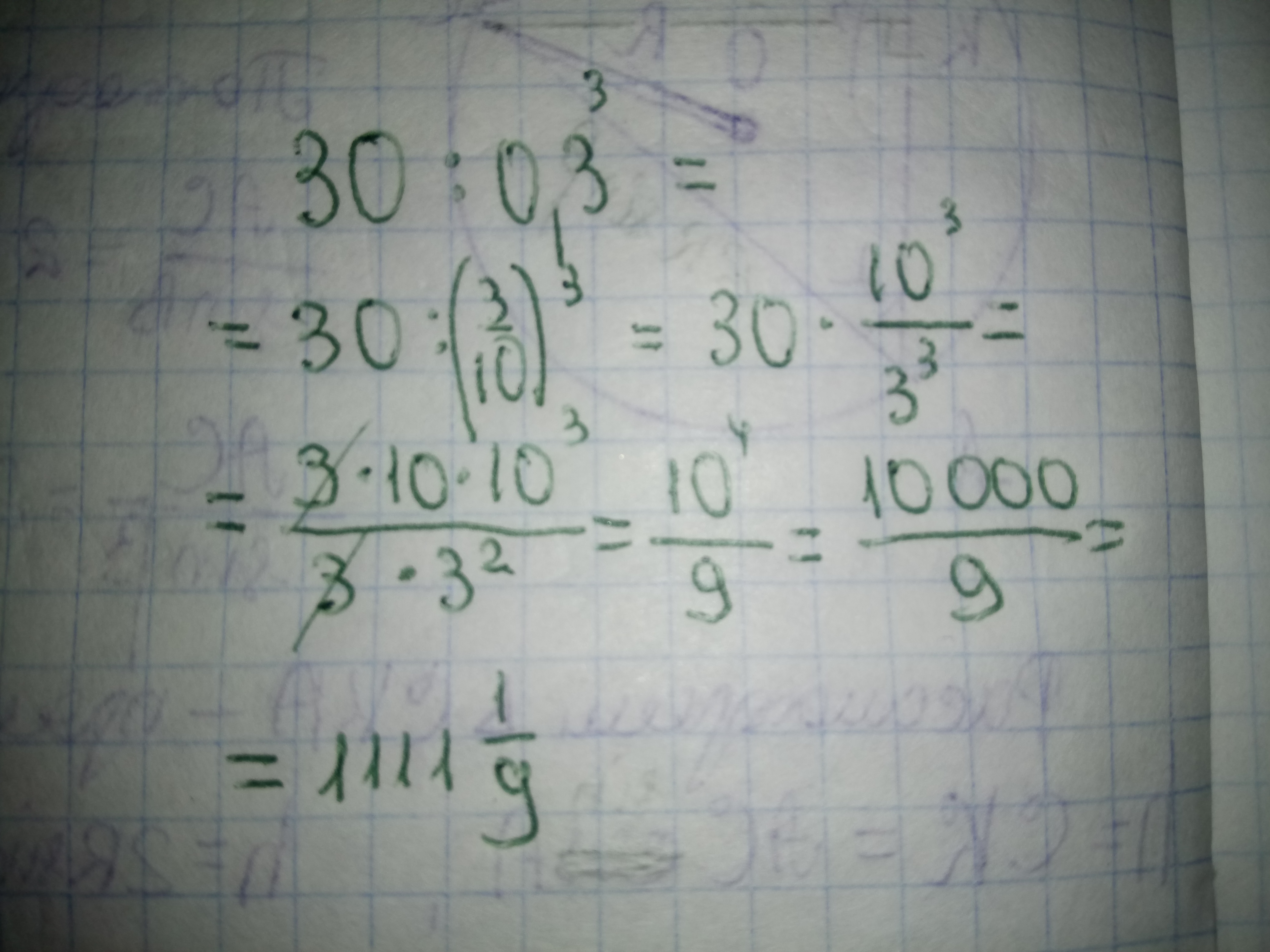 30: 0,3³=30:27/1000=30000/27=10000/9=1111 1/9