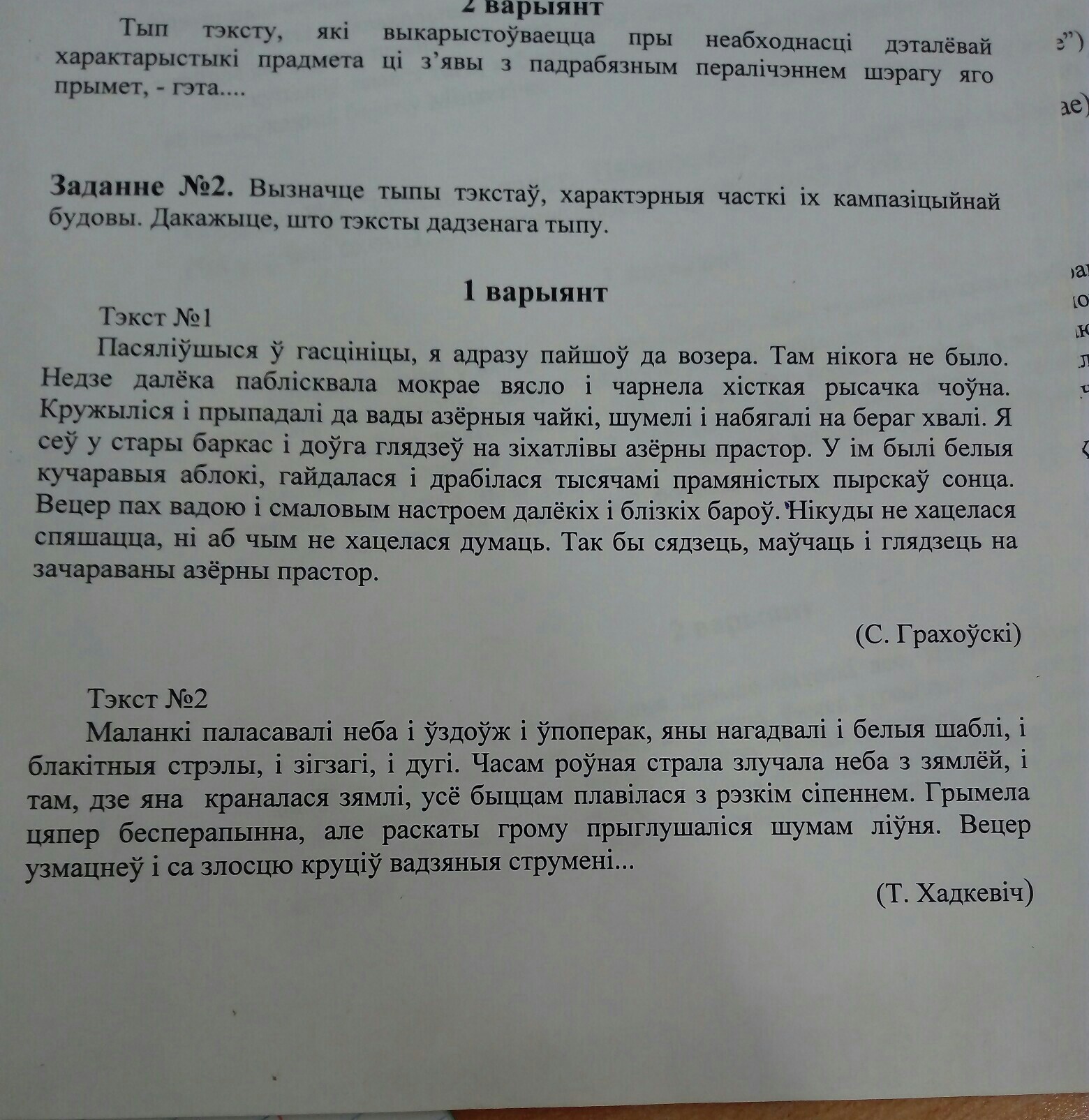 1 тэкст- апавяданне з элементамі апісання ,2-гі тэкст- апісанне