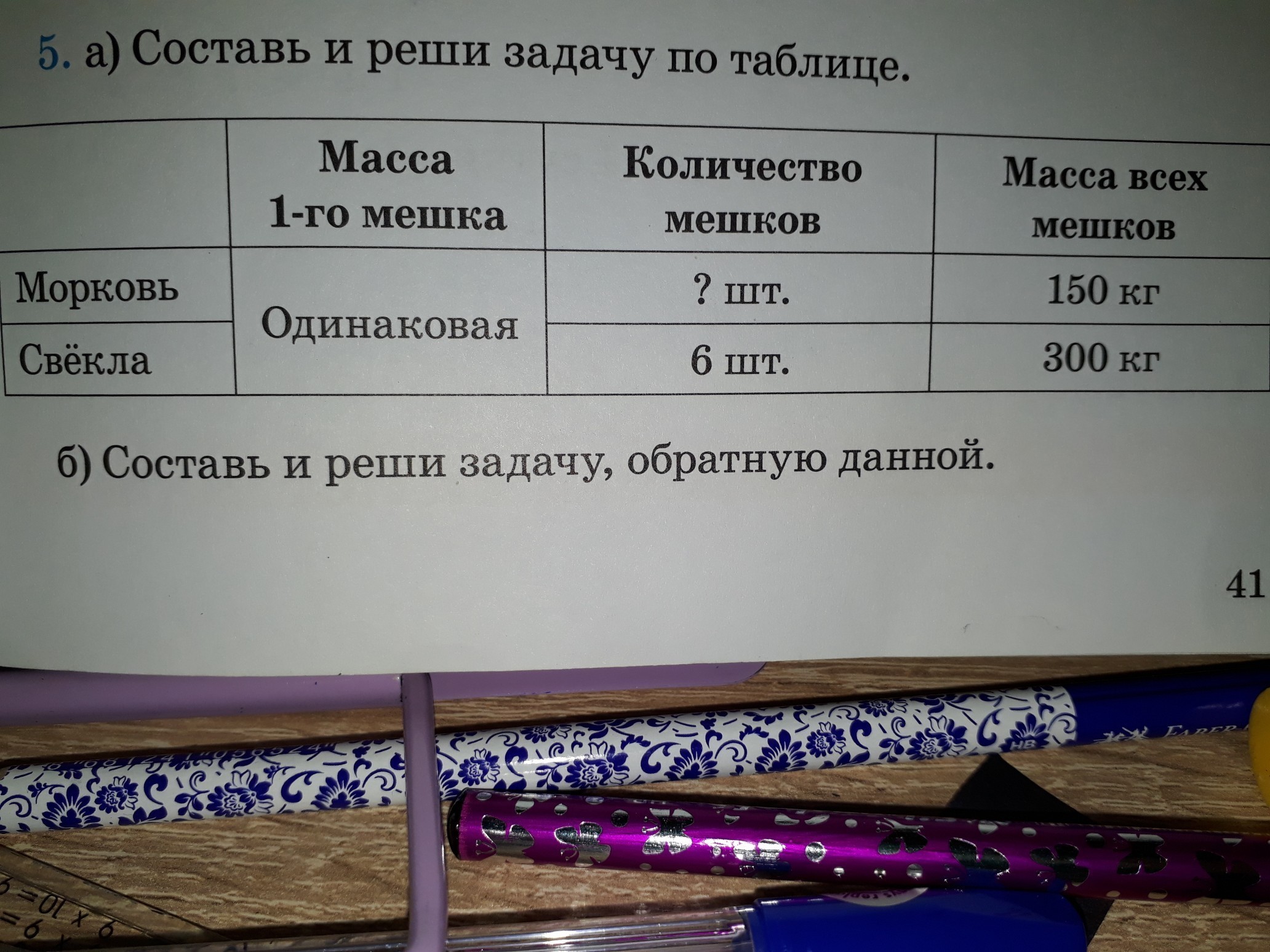 Масса всех мешков: морковь - 150кг; свекла - 300кг