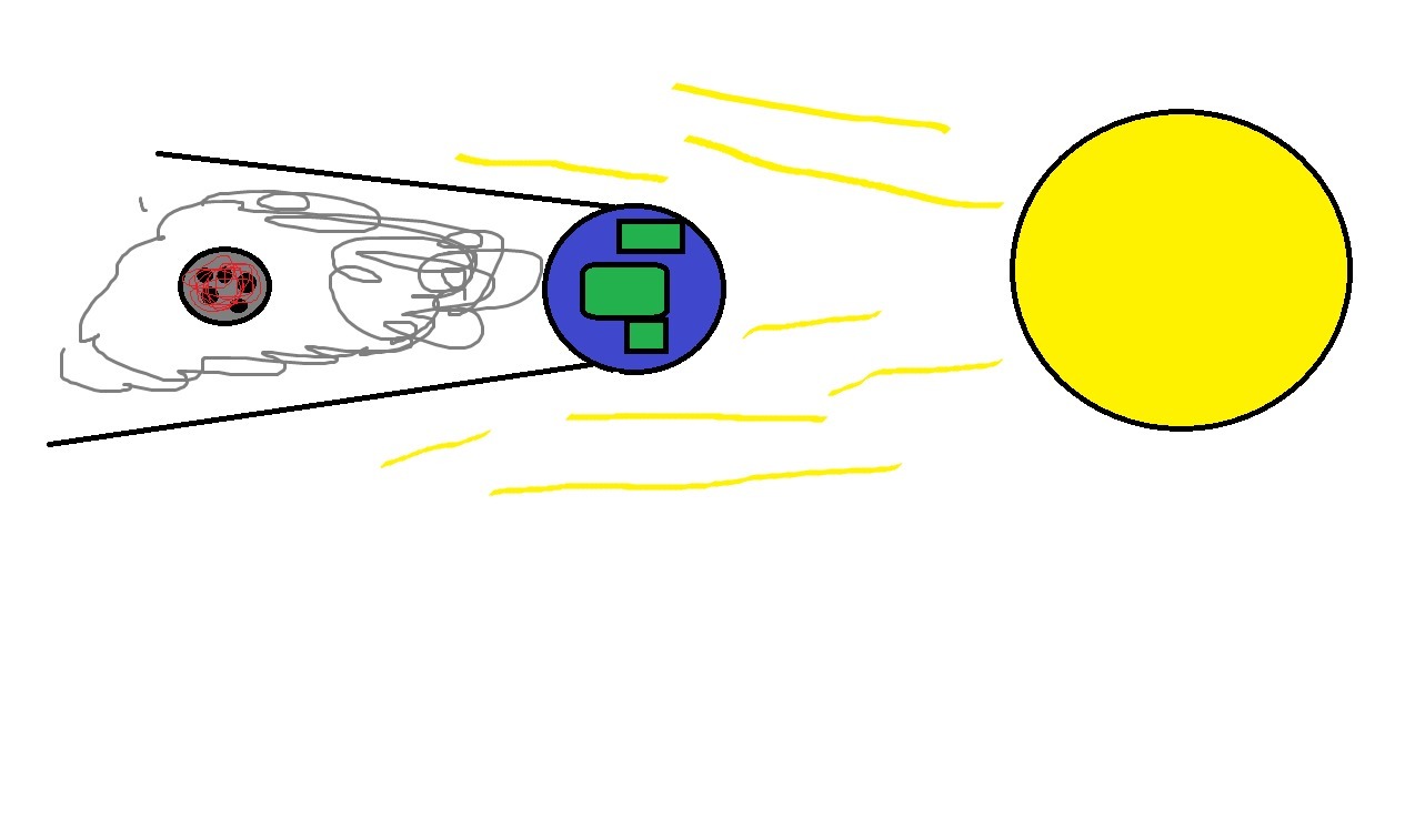 3) Лунное затмение - в этот момент Луна, Земля и Солнце находятся прямо прапорционально друг к другу. Солнечные лучи освещают землю а в этот момент тень Земли окутывает Луны и из-за этого она принимает красный цвет. Для наглядности вот рисунок