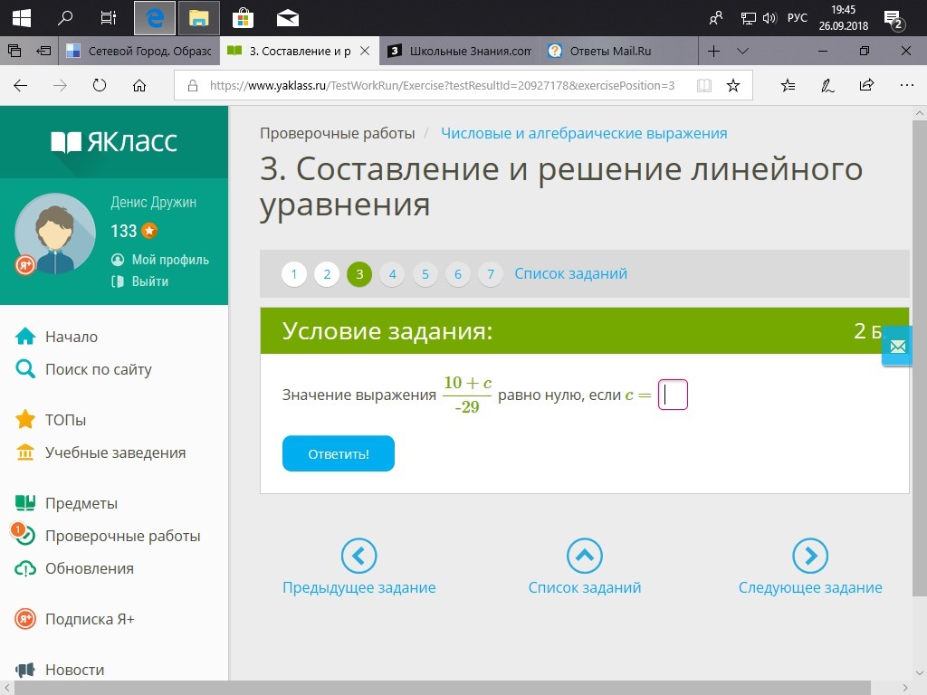 СРОЧНО!!!! ПРОШУ ПОМОГИТЕ! Помогите мне с решением алгебраического выражения: 10+с: (-29)