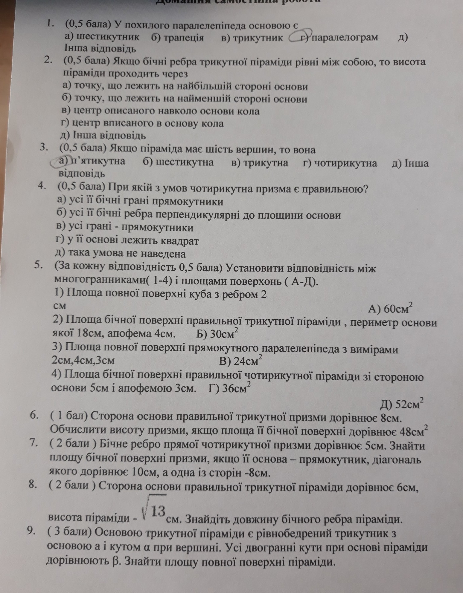 5) 1-В куб має 12 ребер 12*2 5) 3-А ... S=2(a*b+a*c+c*b)