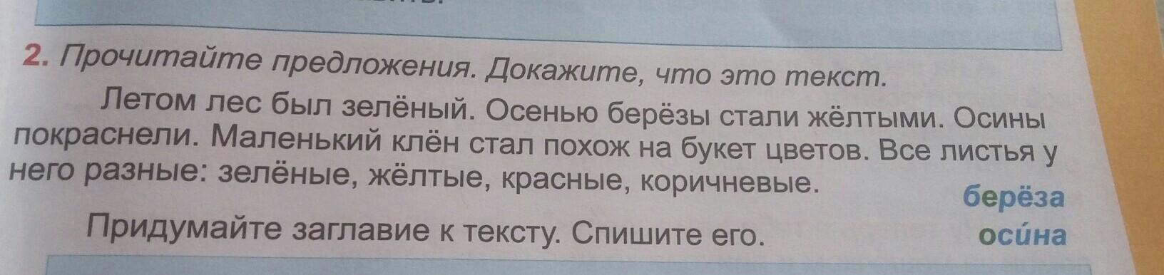 Название текста будет "Осенний лес"