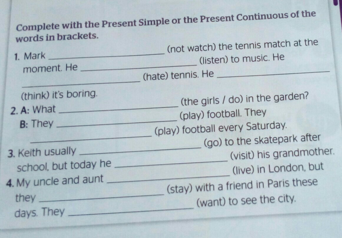 4. My uncle and aunt live in London, but they are staying with a friend in Paris these days. They want to see the city.