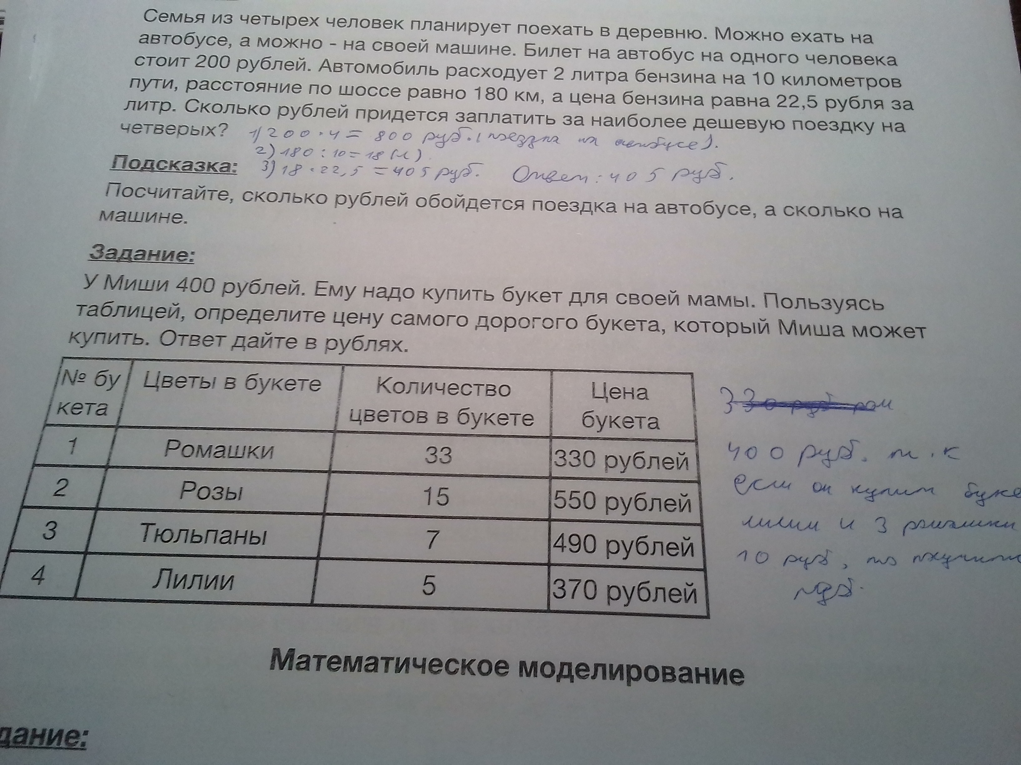 400рублей делится на полученную сумма одного цветка. Там где будет меньший остаток от деления, это и ответ.