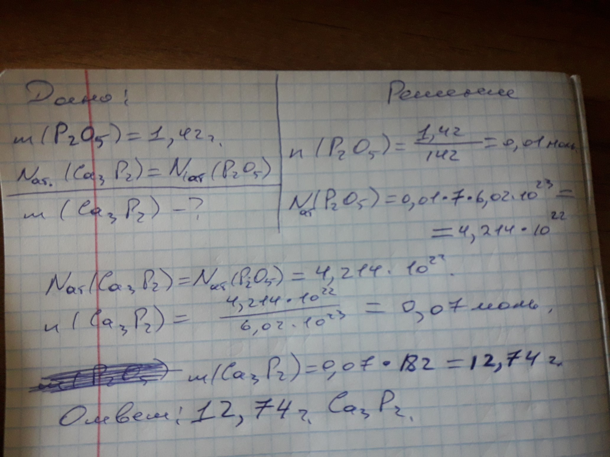 Расчитайте массу фосфида кальция Ca3P2 в которую общее число атомов будет таким же как в оксиде фосфора массой 1,42 г .