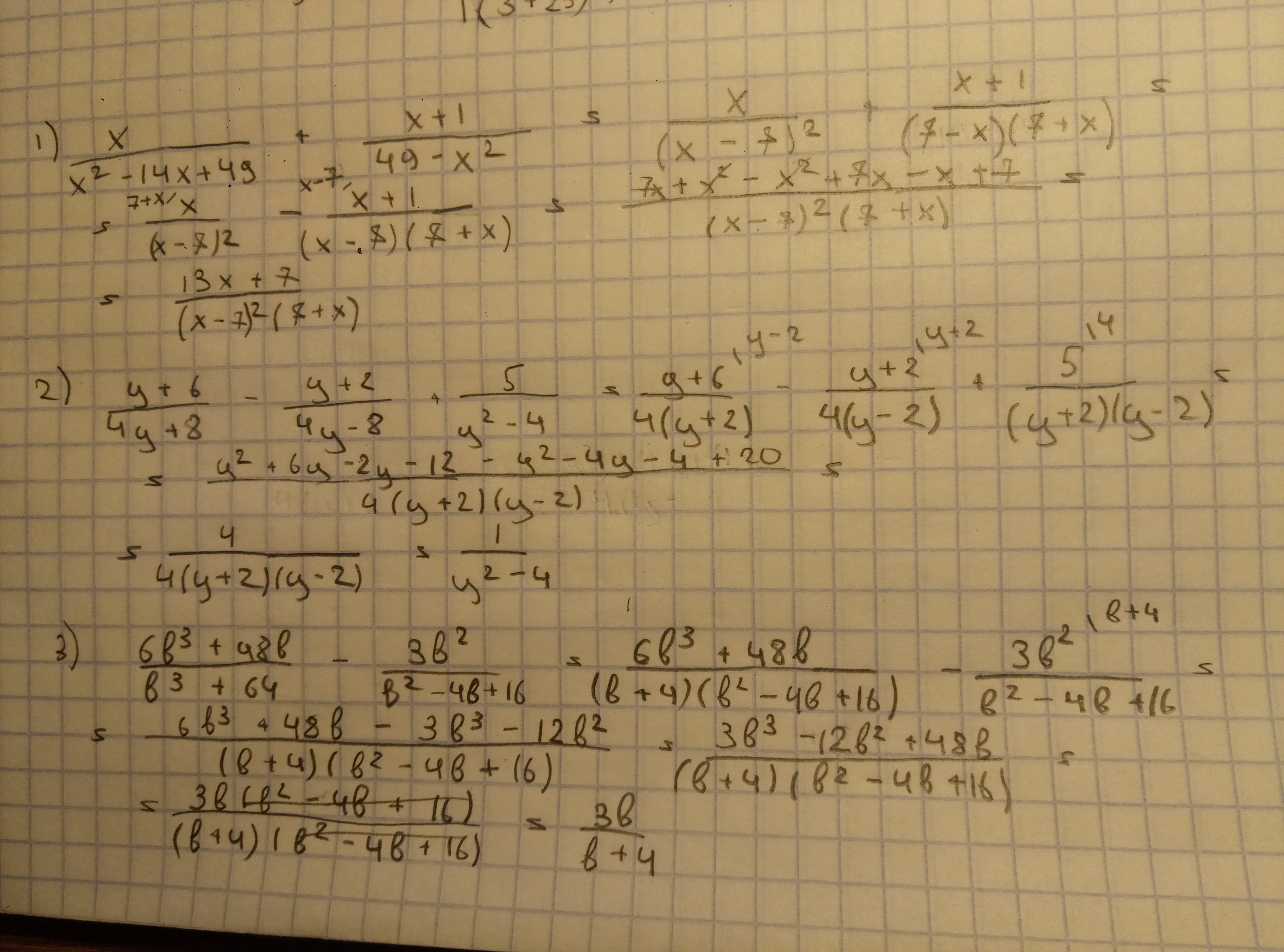 (y+6/4y+8) - (y+2/4y-8) + (5/y^2-4)=