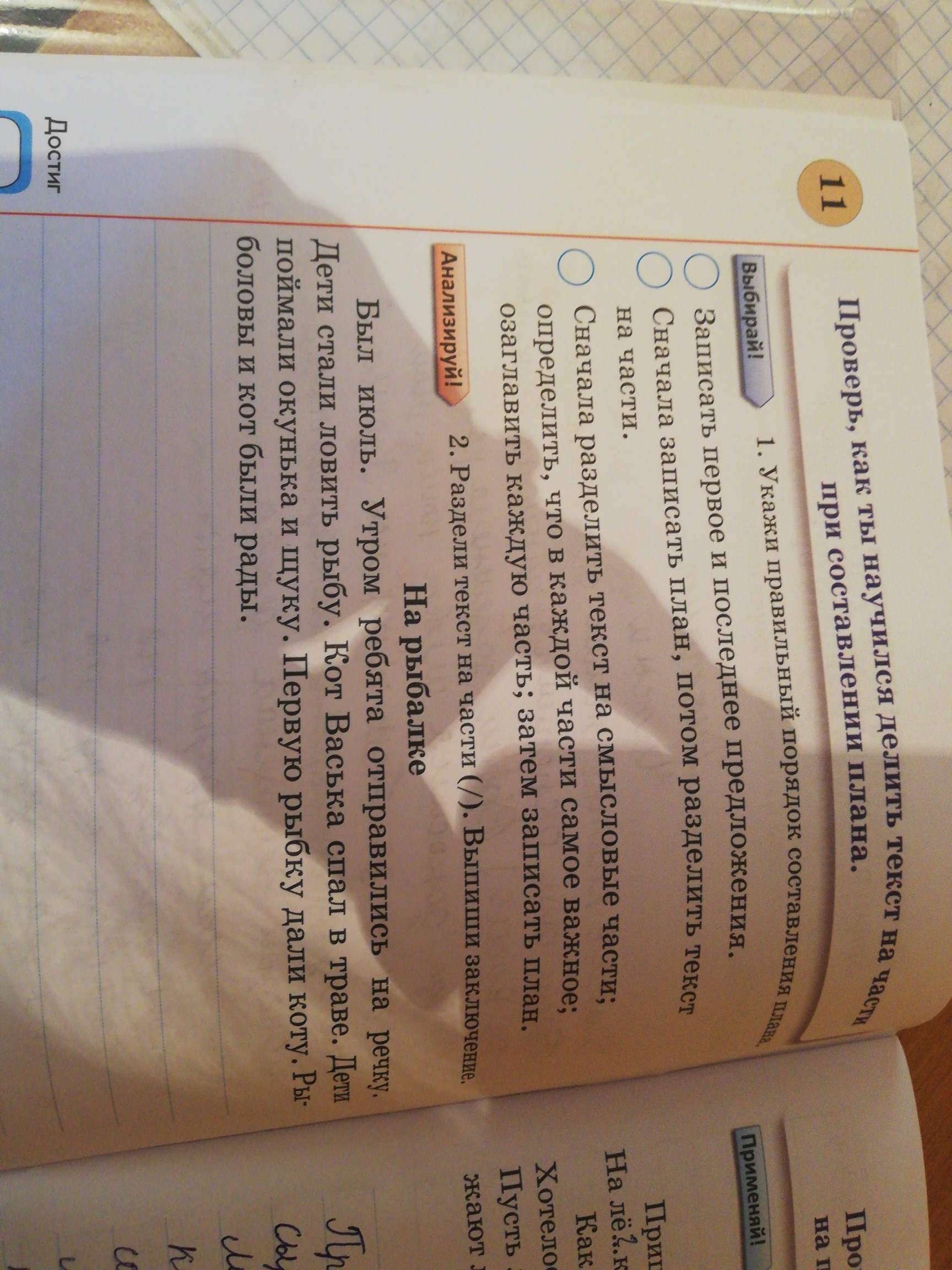 Был июль. Утром ребята отправились на речку. Дети стали ловить рыбу. Кот Васька спал в траве. Дети поймали окунька и щуку. Первую рыбку отдали коту. Рыболовы и кот были рады.
