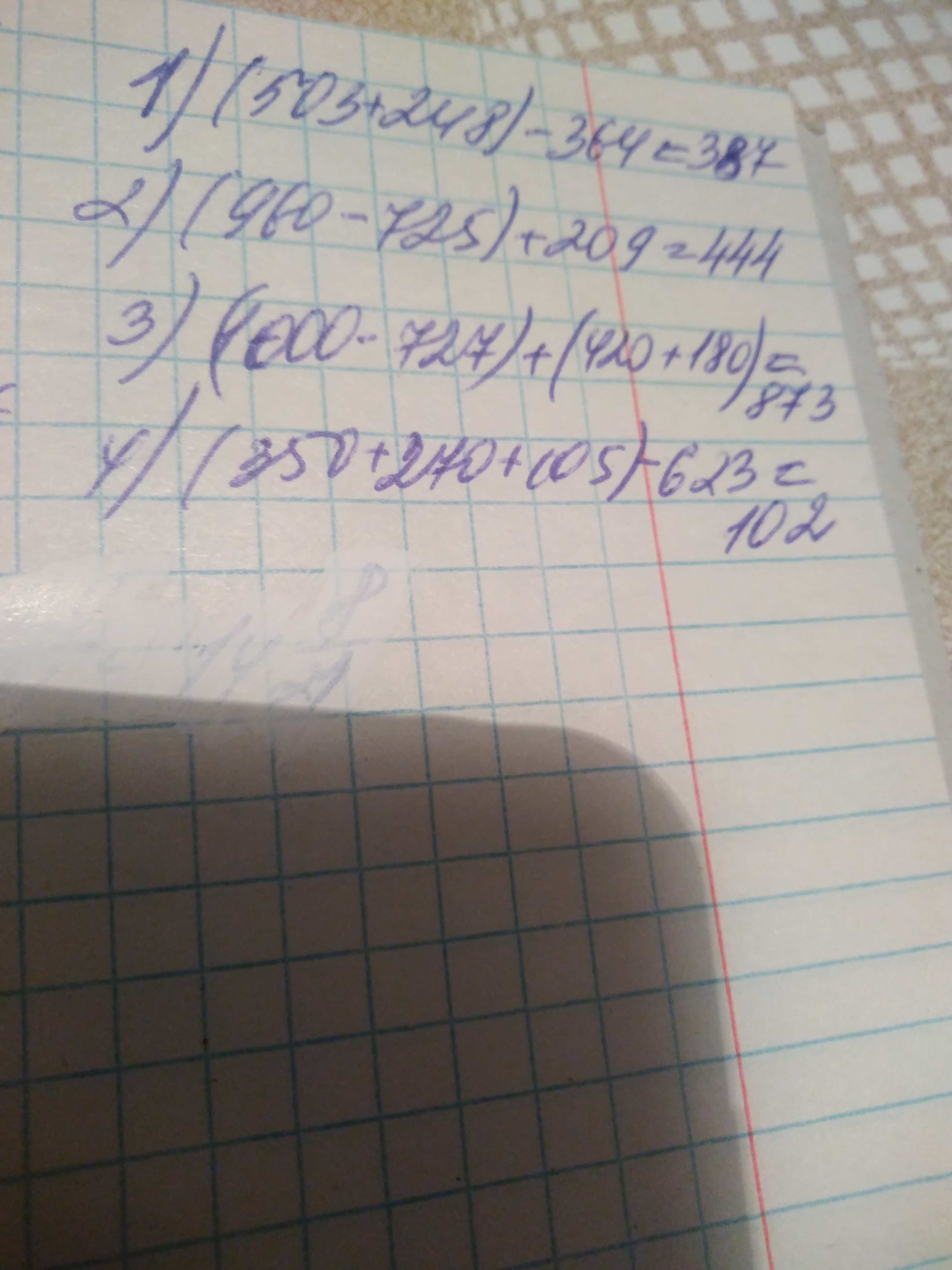 4) Из суммы чисел 350, 270 и 105 вычесть число 623.