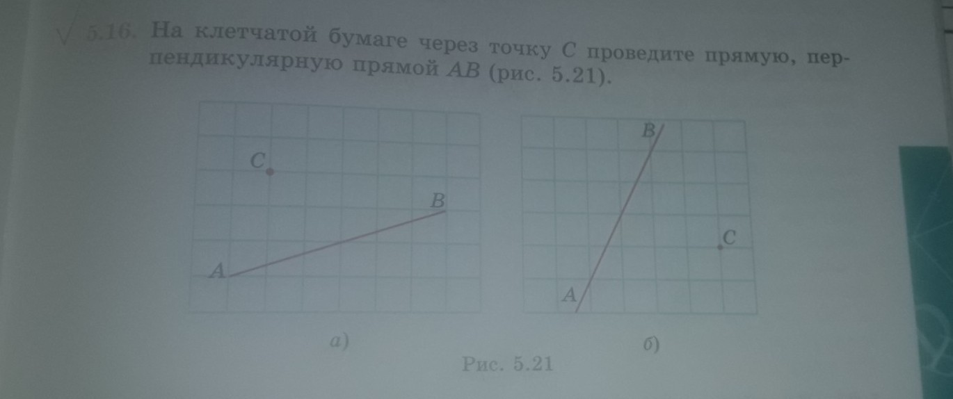 на клетчатой бумаге через точку C Проведите прямую перпендикулярную прямой AB (рис.21)