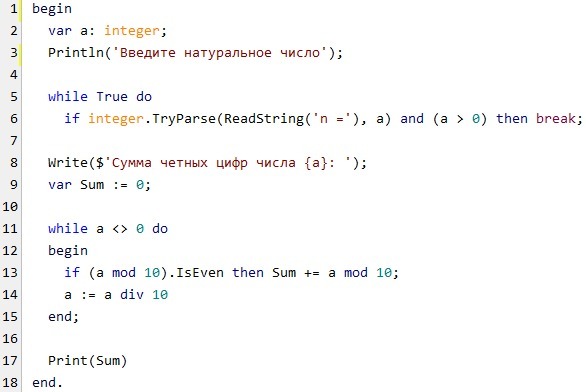 В программу вводится натральное число . Сделать так что бы прорамма выдала сумму всех четных цифр