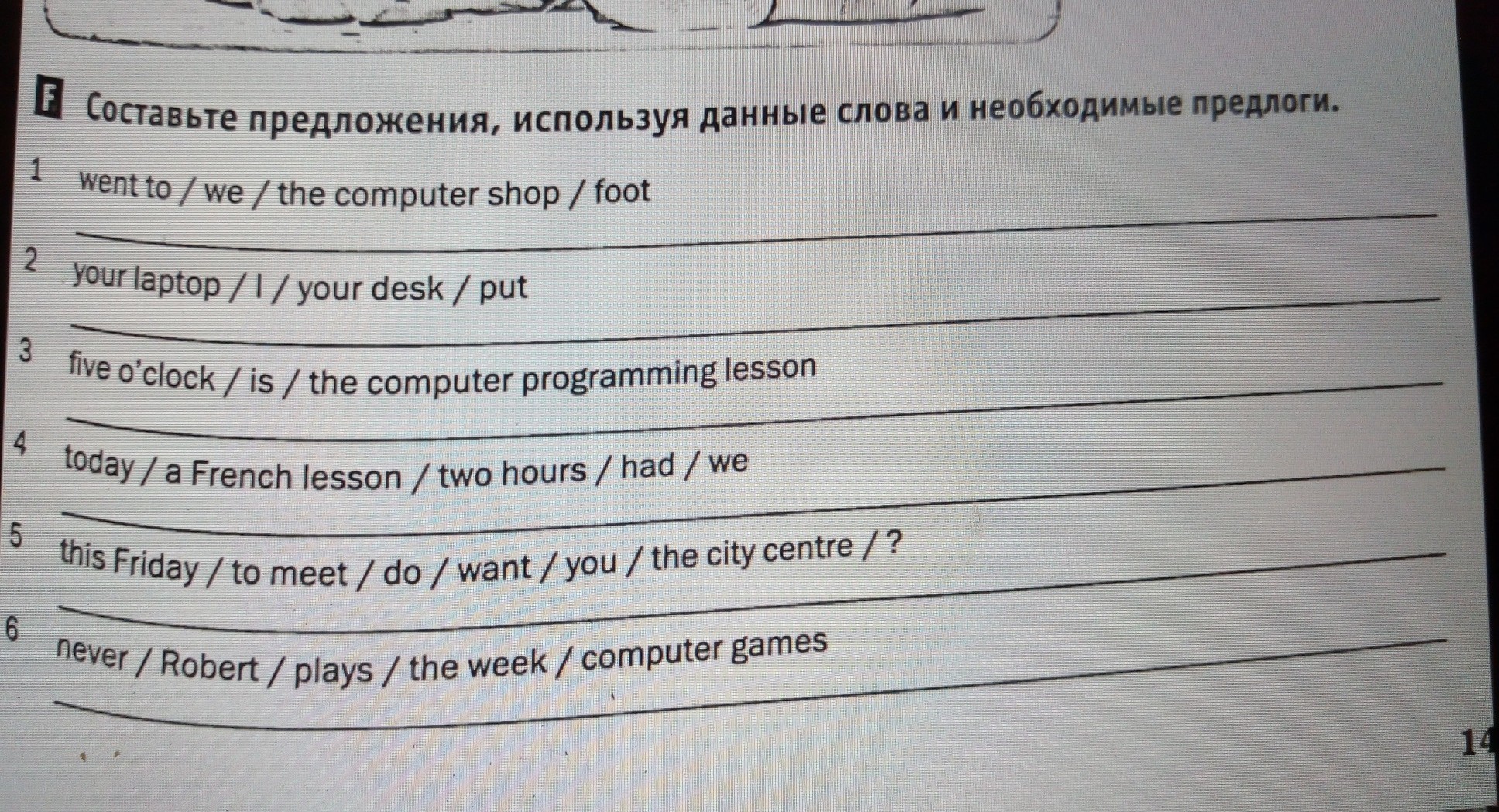 Составьте предложения, используя данные слова и необходимые предлоги на английском языке