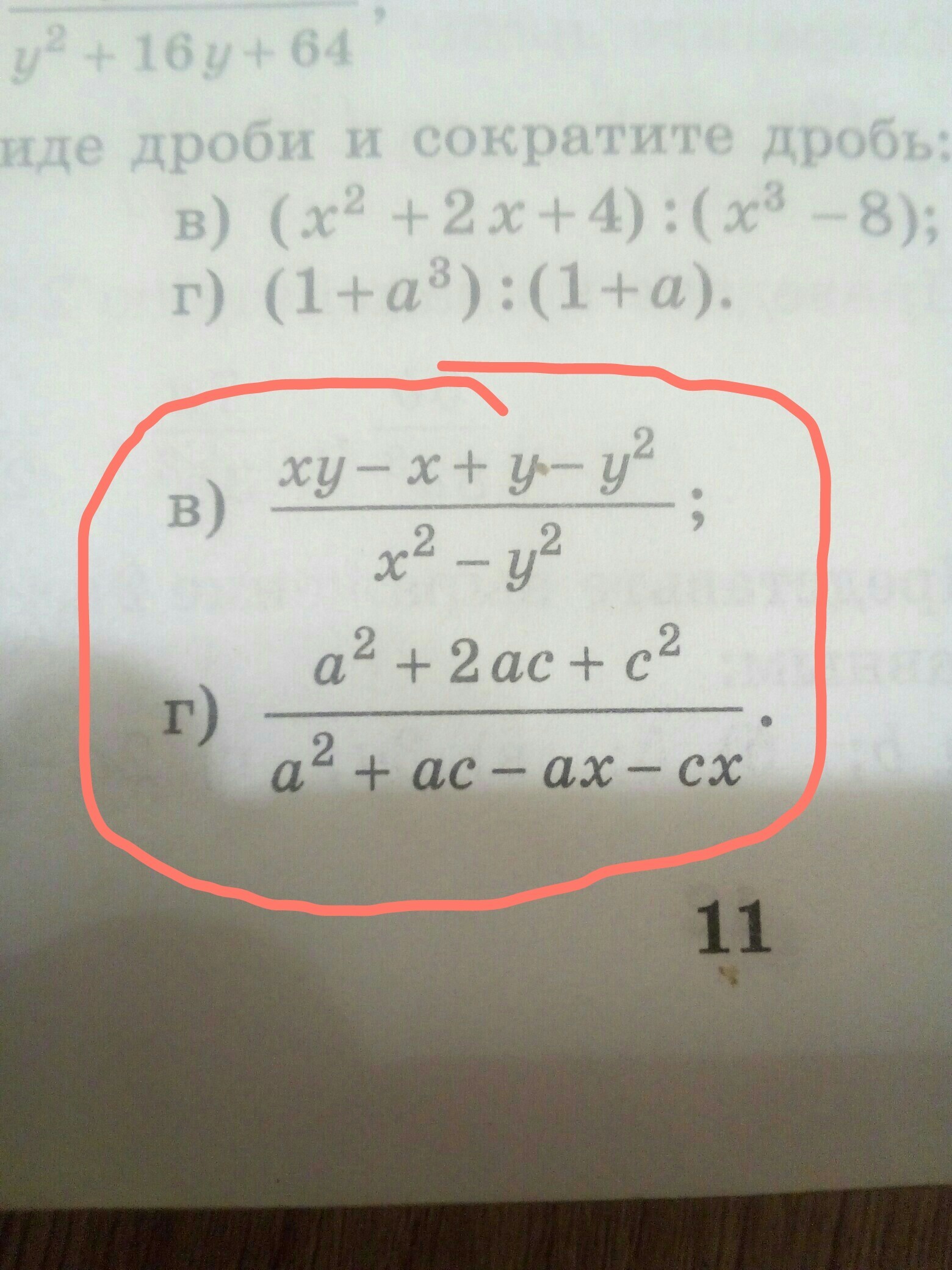 г)(а+с)²/ а(а+с)-х(а+с) = (а+с)²/ (а+с)(а-х) = а+с / а-х