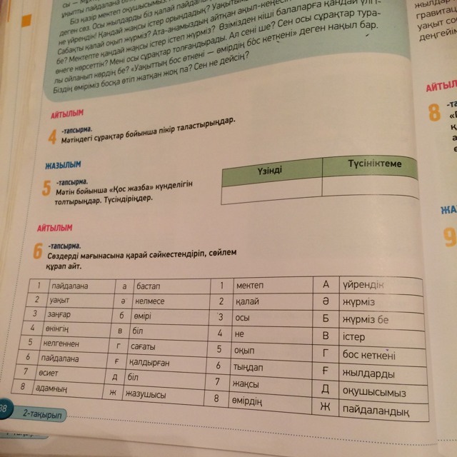 1. 1)в,2)г,3)ж, 4)ә,5)а,6)д,7,ғ, 8)б 2. 1)Д, 2)Ж, 3)Ғ, 4)А, 5)Ә, 6)Б, 7)В, 8)Г.