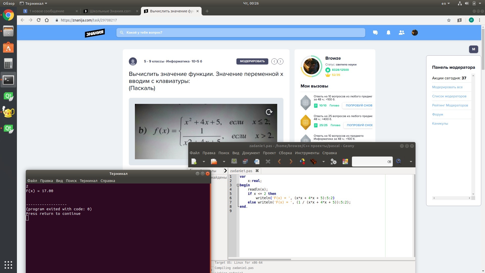 else writeln('F(x) = ', (1 / (x*x + 4*x + 5)):5:2);