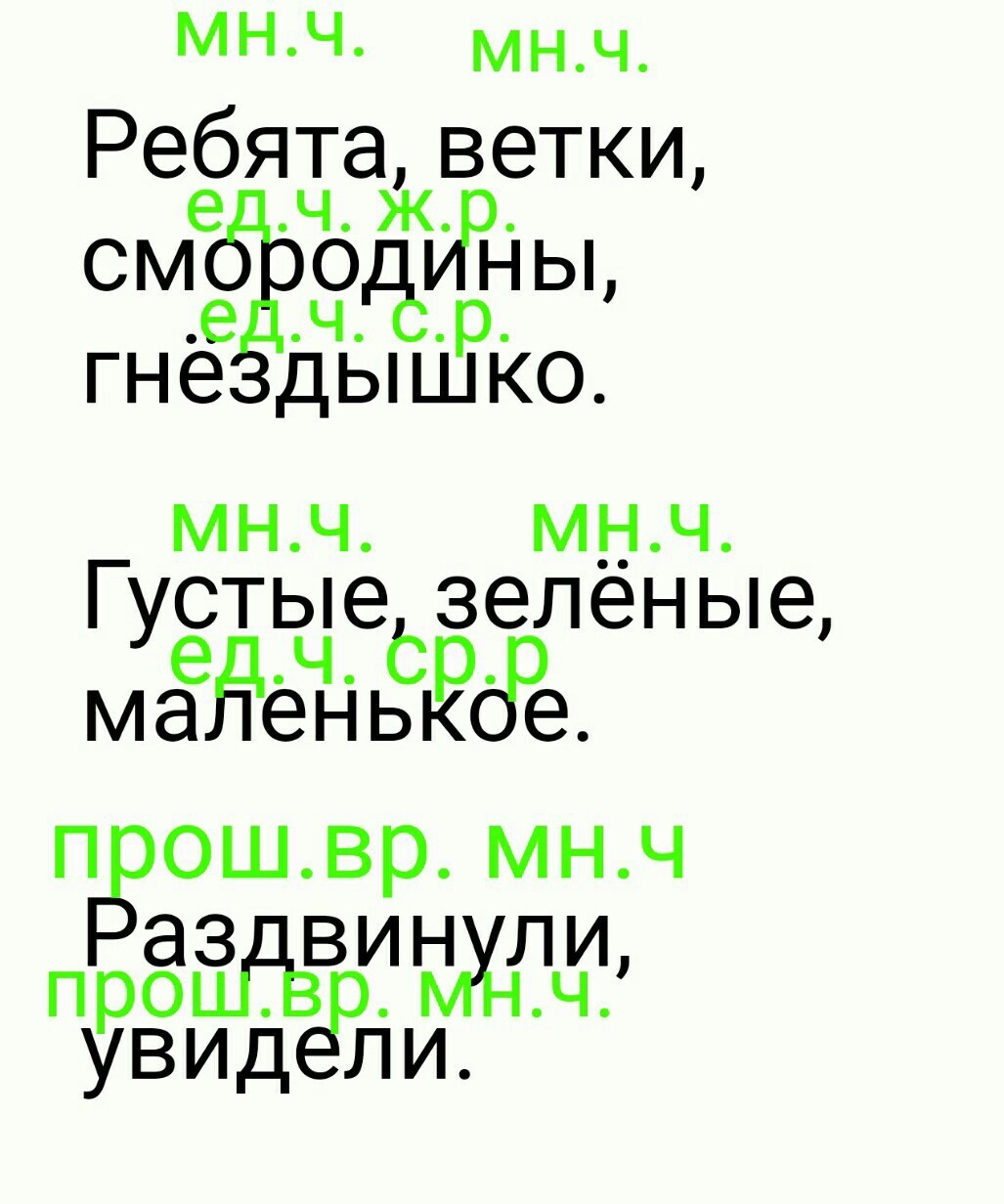 определи части речи в предложении.у существительных и приланательных обозначать род и число, у глаголов число и время.
