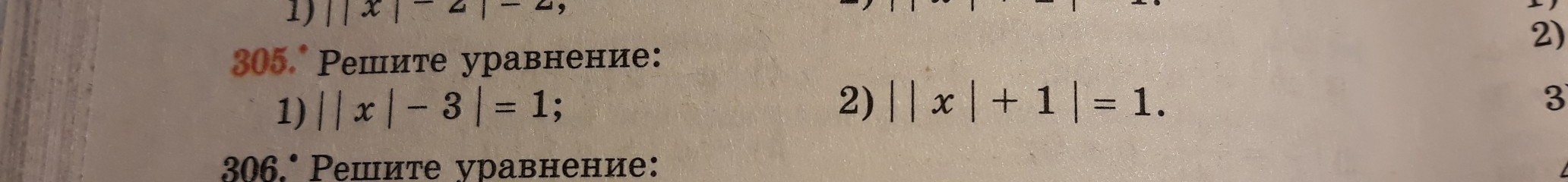 1); ; |, |x|-3, |=1; ; Rightarrow ; ; |x|-3=pm 1\\a); |x|-3=1; ,; |x|=4; ; Rightarrow ; ; x=pm 4\\b); ; |x|-3=-1; ,; |x|=2; ; Rightarrow ; ; x=pm 2\\Otvet:; ; x=-4; ,; x=4; ,; x=-2; ,; x=2; .\\2); ; |, |x|+1, |=1; ; Rightarrow ; ; |x|+1=pm 1\\a); |x|+1=1; ,; |x|=0; ; Rightarrow ; ; x=0\\b); ; |x|+1=-1; ,; |x|=-2; ; Rightarrow ; ; xin varnothing ,; t.k.; ; |x|geq 0.\\Otvet:; ; x=0; .