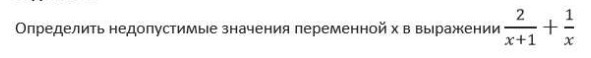 определить недопустимые значения переменной x в выражении 2/x+1 + 1/x