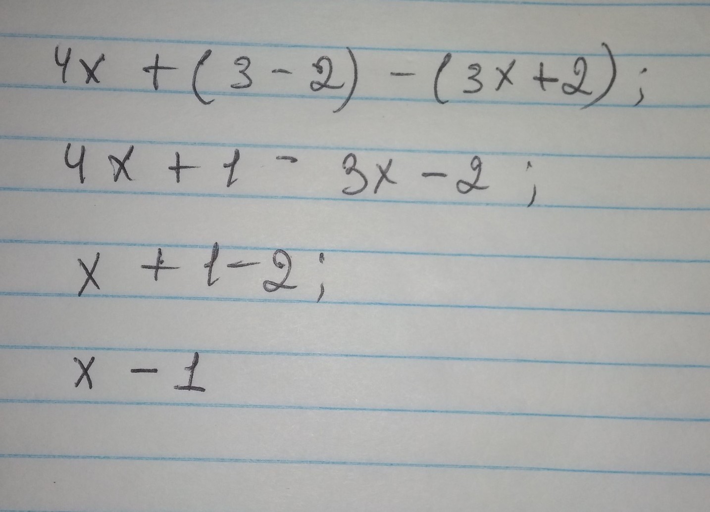 4х+(3-2)-(3х+2)=4х+1-3х-2=х-1