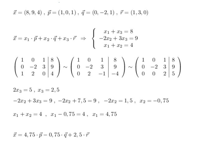 Написать разложение вектора x по векторам p, q, r
