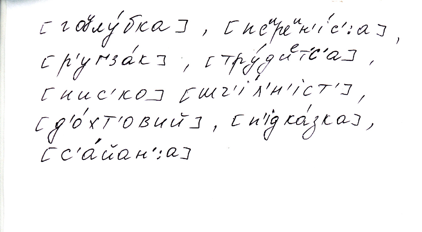 Звуковий запис слів голубка,перенісся,рюкзак,трудиться,низько,щільність,дьогтьовтй,підказка,сяяння