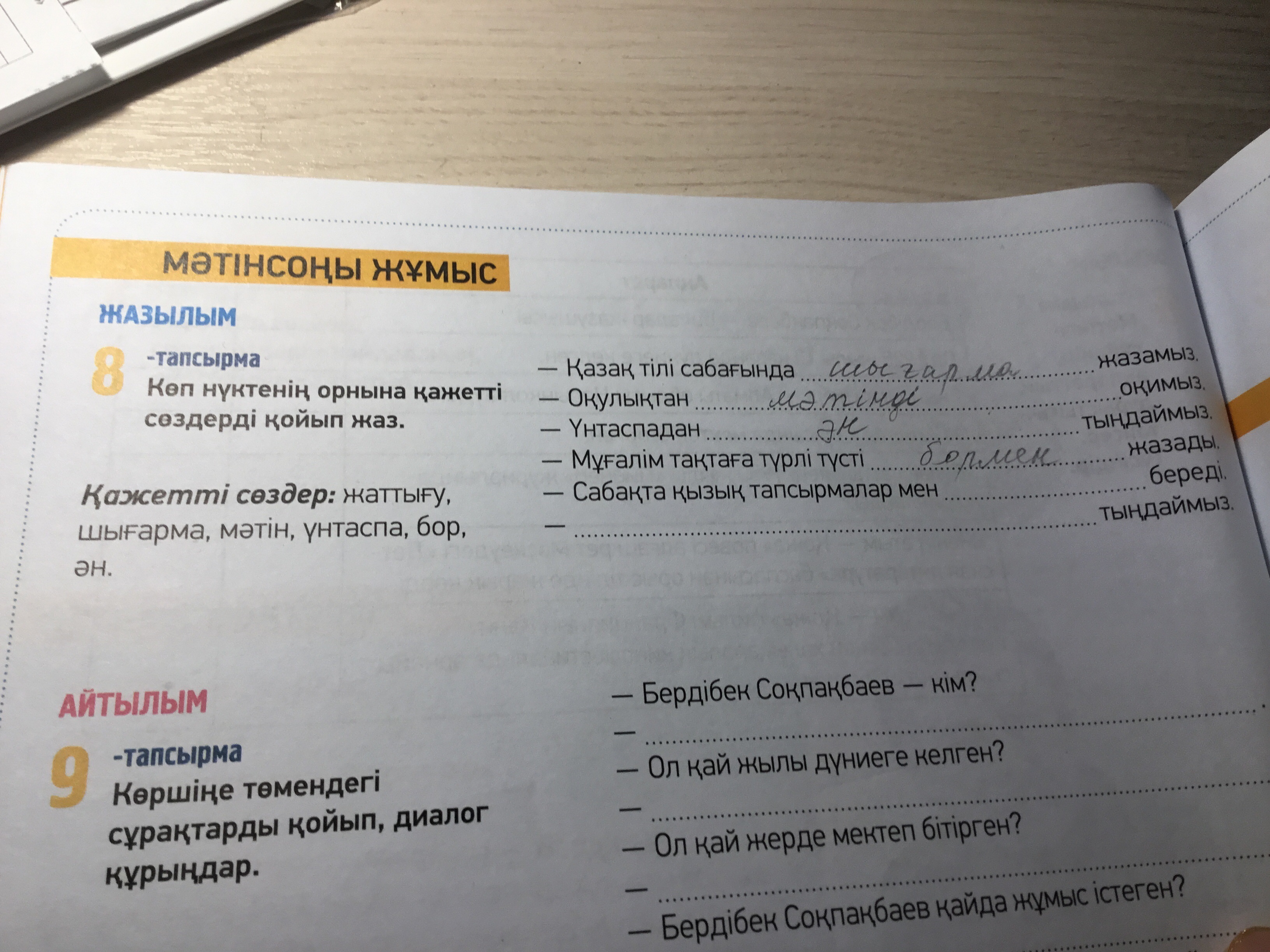 Сабақта қызық тапсырма мен үнтаспа береді.